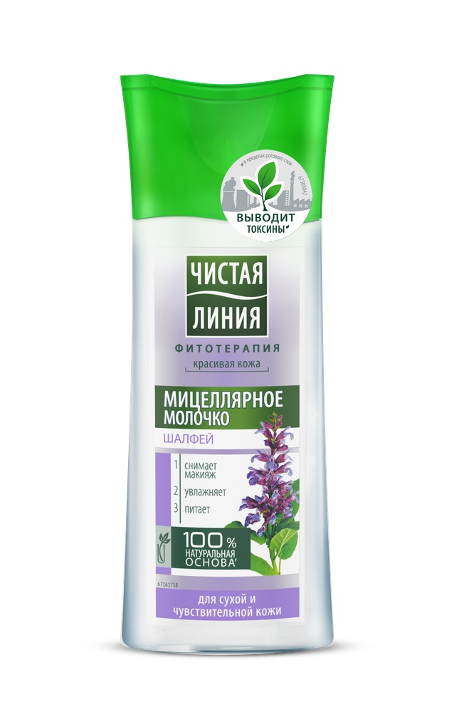 Наша кожа ежедневно сталкивается с множеством видов токсинов: во время прогулки, во время приготовления еды и уборки, при пассивном курении.Токсины – это не просто загрязнение. Они могут значимо влиять на внешний вид кожи: делать ее тусклой, провоцировать появление прыщей и даже угревой сыпи, также могут препятствовать ее дыханию, восстановлению. Но самое главное - токсины мешают работе Вашего крема – вместо того, чтобы усваивать и перерабатывать все те полезные увлажняющие или антивозрастные компоненты, которые содержит Ваш крем, кожа тратит ресурсы на борьбу с токсинами, нейтрализацию их вредного воздействия.Детокс-очищение Чистая линия на 96% отвара трав не просто очищает кожу, но и борется с токсинами в двух направлениях: Защита кожи от токсинов снаружи: очищающие средства Чистая линия удаляют загрязнения, пыль и остатки макияжа, на которых могут быть сорбированы токсины, с поверхности кожи, детокс- действие изнутри кожи: антиоксиданты отвара связывают токсины и свободные радикалы, проникшие в роговой слой эпидермиса, и выводят их из кожи.Эффективность мицеллярной воды и уход молочка в одном продукте! Мицеллярное молочко для снятия макияжа Чистая Линия Шалфей на 100% натуральной основе с экстрактом шалфея снимает макияж, увлажняет и питает кожу лица. Подходит для сухой и чувствительной кожи. Одобрено дерматологами и офтальмологами.Бренд Чистая Линия бережно относится к окружающей среде: мы ‘заряжаем’ продукты природной пользой для вас, при этом предпринимая меры по сохранению нашей общей зеленой планеты для будущих поколений. Мы закупаем 100% возобновляемую электроэнергию, полученную с использованием энергии ветра, для производства продукции на наших фабриках в Екатеринбурге и Санкт-Петербурге, а также направляем 100% производственных отходов на утилизацию, отличную от передачи на полигон: на переработку или дальнейшее использование в других отраслях. Бренд Чистая Линия заботится о нашей природе.