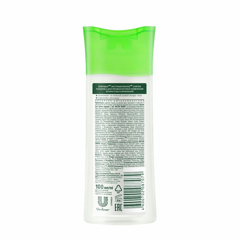 Лосьон для кожи вокруг глаз Чистая Линия Сила дикой природы Хлопковое молочко для снятия макияжа, 100мл