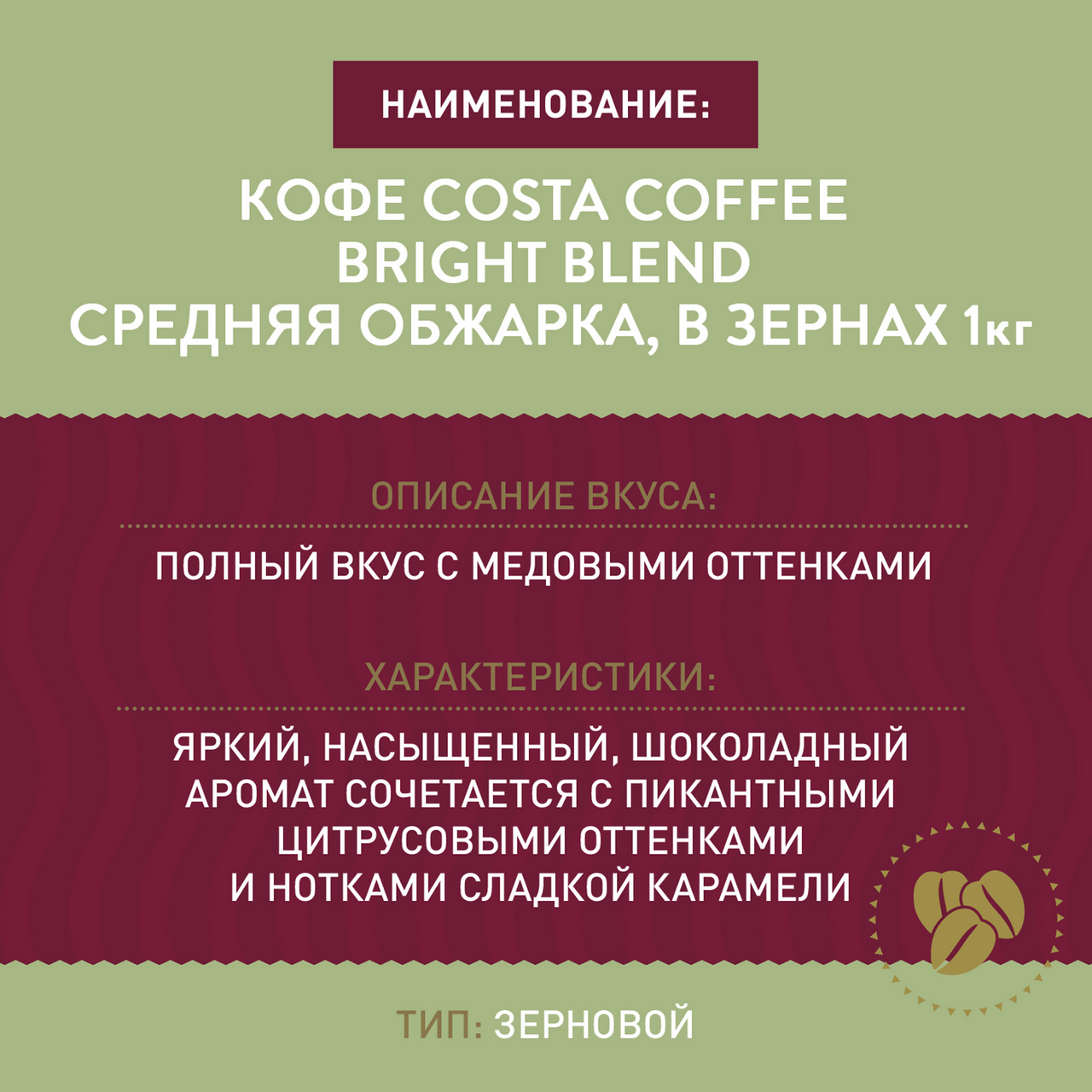 Кофе Costa Coffee Bright Blend Средняя обжарка в зернах, 1кг
