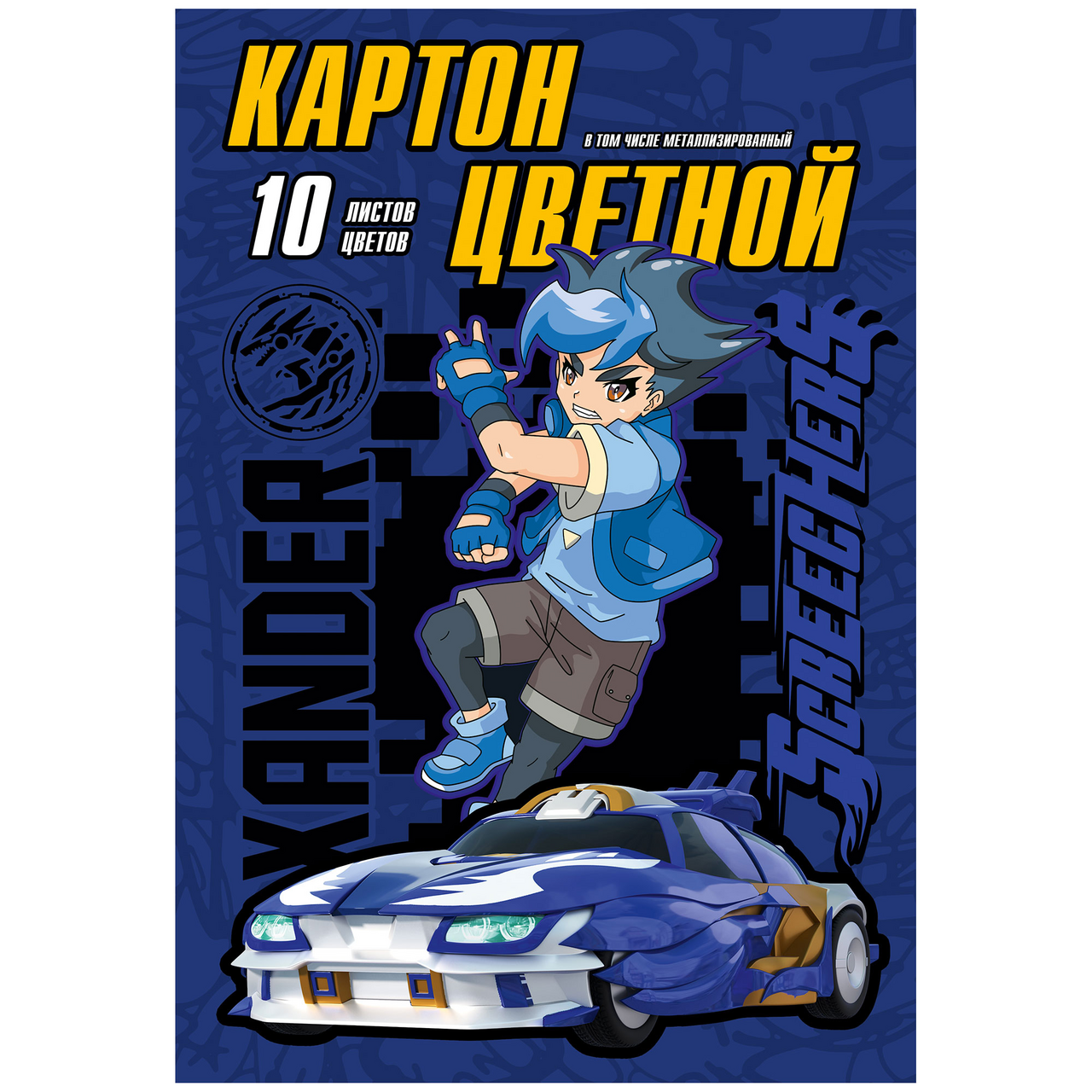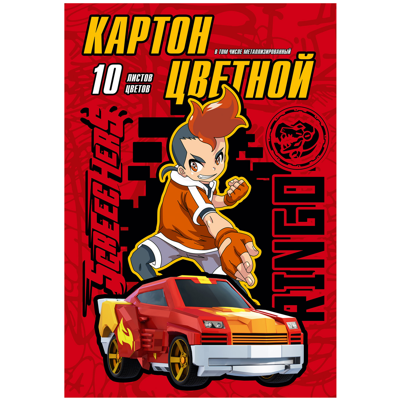 Набор цветного картона для детского творчества 10 листов. Формат А4. В набор входит 10 цветов (из них 2 металлизированных): серебро, золото, желтый, красный, фуксия, зеленый, голубой, фиолетовый, коричневый, черный. Картонная папка с двумя клапанами надежно защищает листы от повреждений и делает набор удобным в использовании.