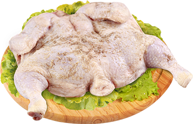 Тушка цыпленка бройлера, чеснок свежий, соль, перец черный молотый, пряности с паприкой и сельдереем, усилитель вкуса и аромата (глутамат натрия), декстроза.