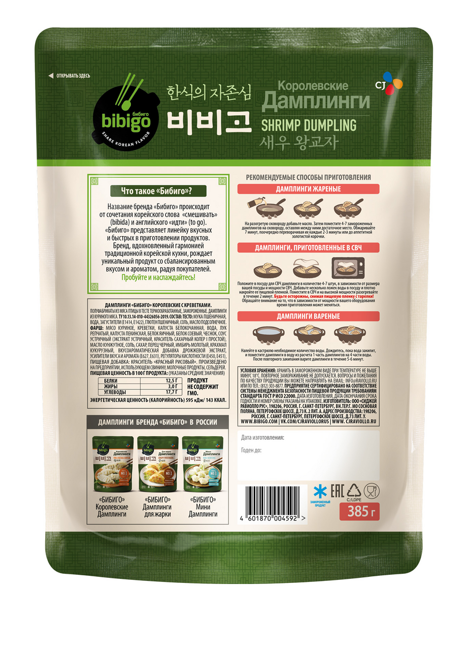 Если вам надоели привычные пельмени, но отказать себе в этом блюде вы не готовы, тогда стоит обратить внимание на сочные, вкусные и ароматные дамплинги. Это блюдо относится к азиатской кухне и изготавливается по особым правилам, которые ни в коем разе нельзя нарушать. Так, у готовых дамплингов должно быть четко выверенное количество защипов, которые рисуются поварами на тесте натуральной бамбуковой палочкой. Готовится это блюдо всего за несколько минут. Когда нет времени, а хочется вкусно покушать и накормить большую семью или нежданно нагрянувших гостей – это прекрасный вариант. Дамплинги легко утолят чувство голода и восполнят силы. Они отлично подойдут как для обеда, так и для ужина. Способы приготовления дамплингов могут ��ыть самые различные. Дамплинги жареные: на разогретую сковороду добавьте масло. Затем поместите 4-7 замороженных дамплингов на сковороду, оставляя между ними достаточное место. Обжаривайте 7 минут, поочередно переворачивая их каждые 2-3 минуты или до аппетитной золотистой корочки. Дамплинги, приготовленные в СВЧ: Положите в посуду для СВЧ дамплинги в количестве 4-7 штук, в зависимости от размера вашей посуды и мощности СВЧ. Добавьте несколько ложек воды в посуду и плотно накройте ее пищевой пленкой. Поместите в СВЧ и на высокой мощности разогревайте в течение 2 минут. Будьте осторожны, снимая пищевую пленку с тарелки! Обращайте внимание на то, что в зависимости от мощности вашего оборудования время приготовления может меняться. Дамплинги вареные: нале��те в кастрюлю необходимое количество воды. Дождитесь, пока вода закипит, и поместите дамплинги в воду из расчета 1 часть дамплингов на 4 части воды. После повторного закипания варите дамплинги в течение 5-6 минут. Бибиго — бренд в корейском стиле, который придает особую ценность и значимость традиционной корейской кухне, и создает новый стиль жизни. Корейская еда — это гармония вкуса и сбалансированного питания. Это рецепты, которые сохраняют натуральные свойства продуктов и ароматов традиционных ингредиентов.