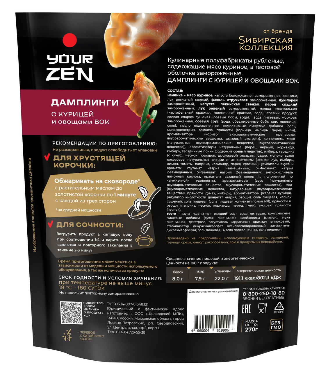 Дамплинги Сибирская коллекция Your Zen курица и овощи вок, 270г