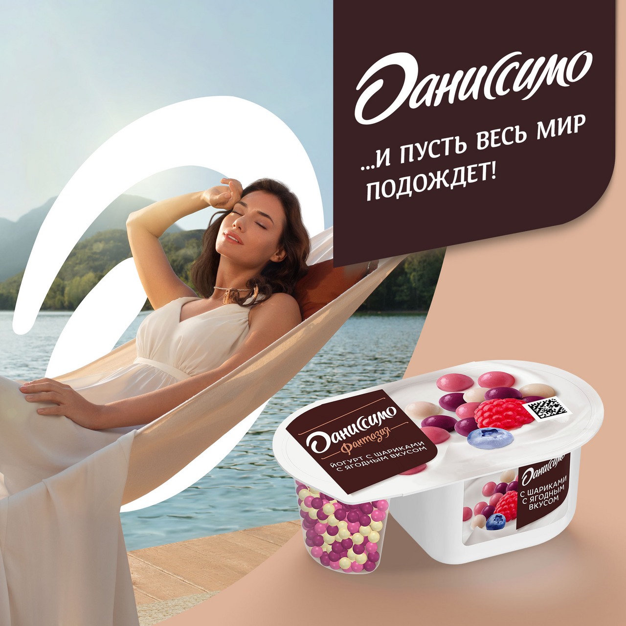 Йогурт Даниссимо Фантазия с ягодными шариками 6.9%, 105г