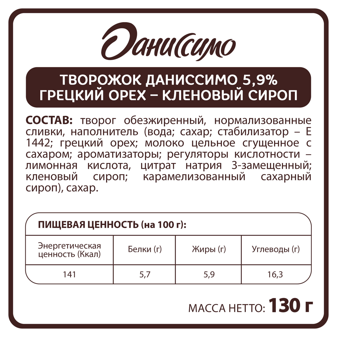 Творожок Даниссимо со вкусом мороженого с грецким орехом и кленовым сиропом 5.9%, 130г