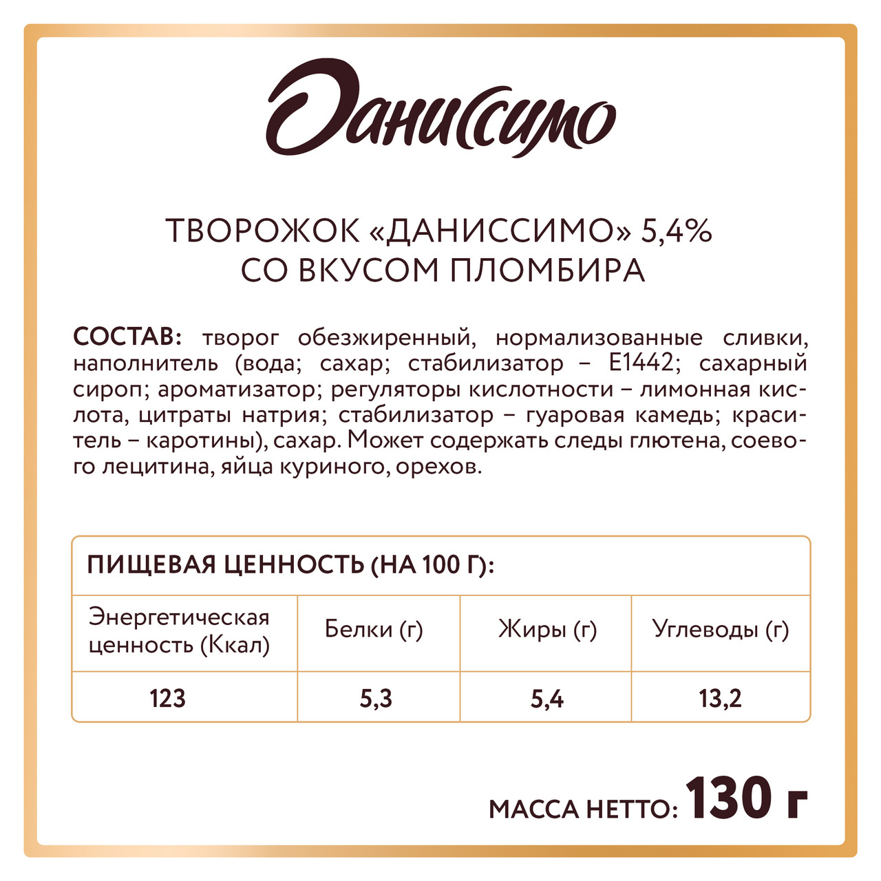 Творожок Даниссимо со вкусом пломбира 5.4%, 130г