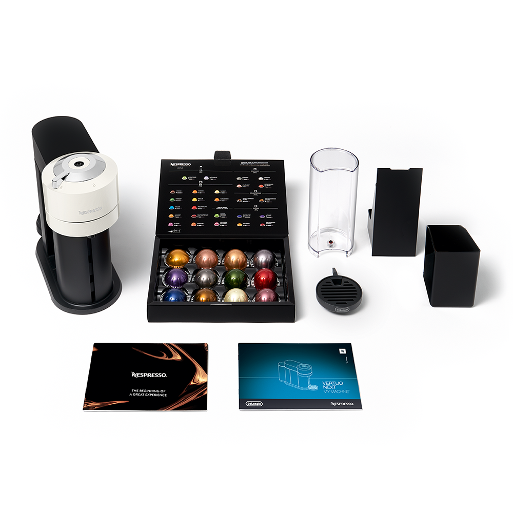 Vertuo Next - это следующее поколение инновационных кофемашин Nespresso Vertuo! Выберите свою идеальную чашку натурального кофе из шести объемов – от Эспрессо (40 мл) до Пуровер (535 мл). Одно касание, и кофемашина считывает нанесенный на каждую капсулу уникальный штрихкод, чтобы раскрыть все грани вкуса различных сортов натурального кофе, а также, непревзойденную пенку крема?. У кофемашины Vertuo Next, самой компактной в коллекции кофемашин Vertuo, с ее многочисленными цветовыми решениями и металлическими элементами дизайна найдется, чем вас удивить. Корпус кофемашины на 54 % состоит из переработанного пластика, чтобы обеспечить более экологически устойчивое будущее. Nespresso реализует собственную программу переработки капсул. Их можно сдать в любом бутике Nespresso или передать с курьером при получении онлайн-заказа.
