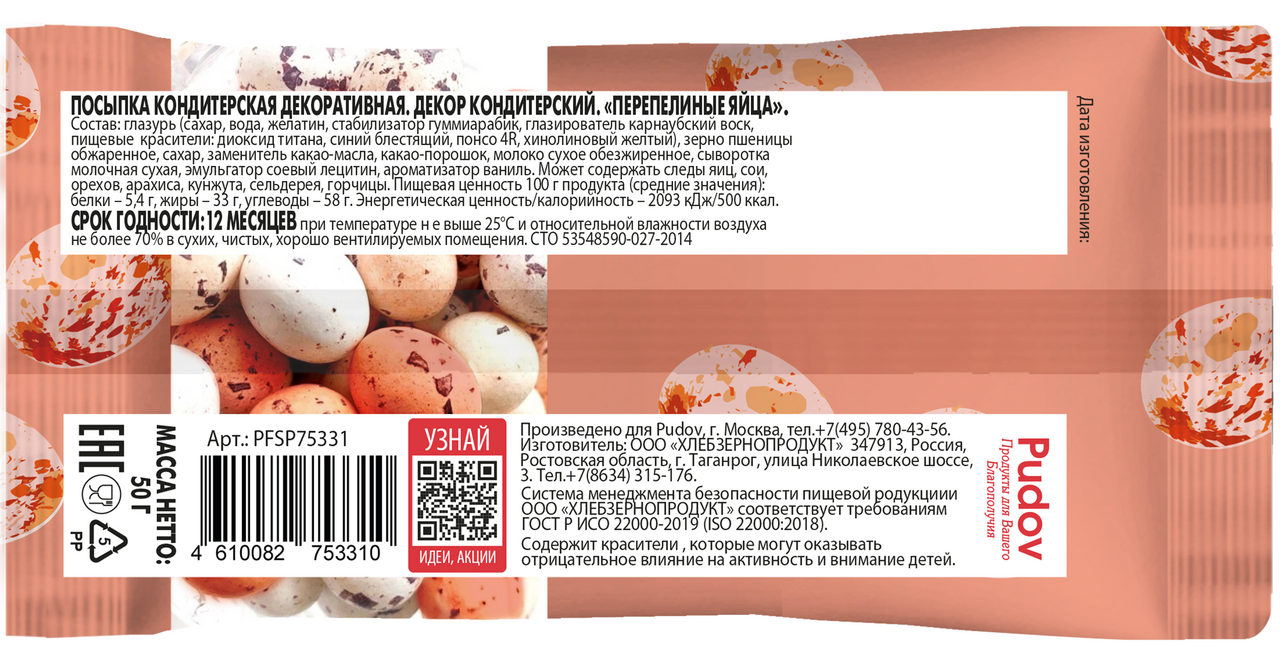 Декор С.Пудовъ перепелиные яйца, 50г