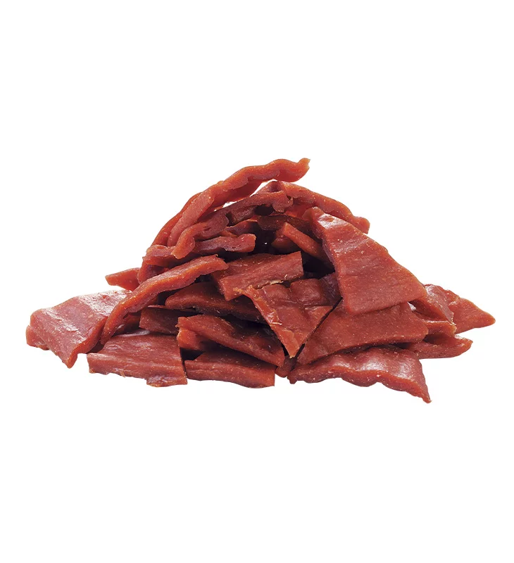 Лакомство Деревенские лакомства Ломтики крольчатины для собак мини-пород 55 г – качественный и вкусный продукт, разработанный с учетом особенностей организма животных. В любое время года и при любой погоде ваша собака может насладиться ярким вкусом ароматного лакомства. Продукт представляет собой специально обработанные вяленые дольки кроличьего мяса, без добавления специй. Также в состав включены субпродукты растительного происхождения и минералы, улучшающие состояние здоровья собаки, поддерживающие в надлежащем виде кожу и шерсть. Стоит учесть, что продукт не является полноценным рационом, предназначен для разового применения. К примеру, вы можете дрессировать животное, в качестве поощрения выбрав вкусные ломтики крольчатины. Ветеринары советуют при кормлении питомца сухими, вялеными кормами всегда проверять наличие воды в его миске. Это необходимо для того, чтобы предотвратить обезвоживание организма и поддерживать водно-электролитный баланс на должном уровне.