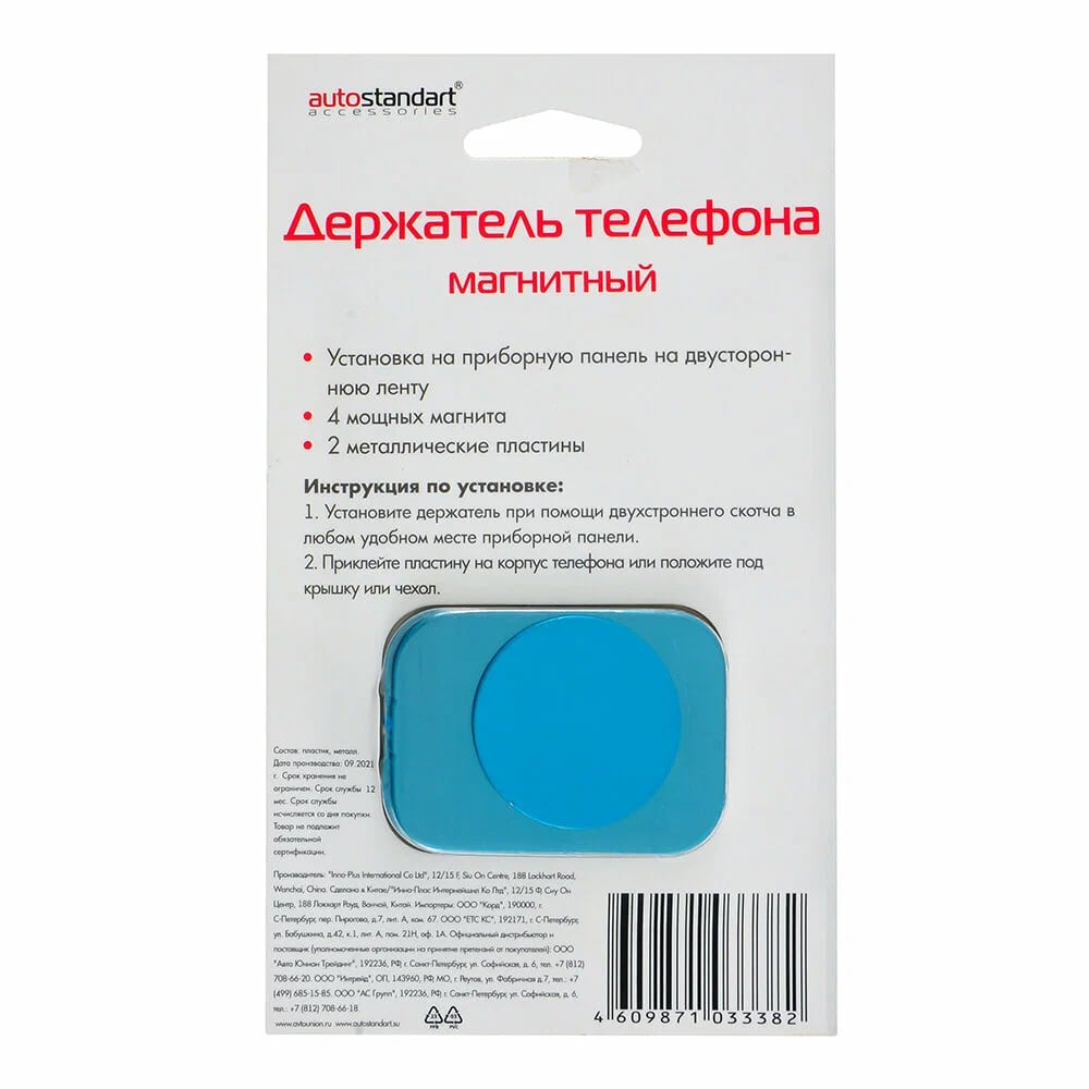 Устанавливается в любом удобном месте на приборной панели при помощи двухстороннего скотча. Платформа снабжена четырьмя магнитами. Диаметр платформы 45 мм. Компактный, легкий, портативный. В наборе две металлические пластины.