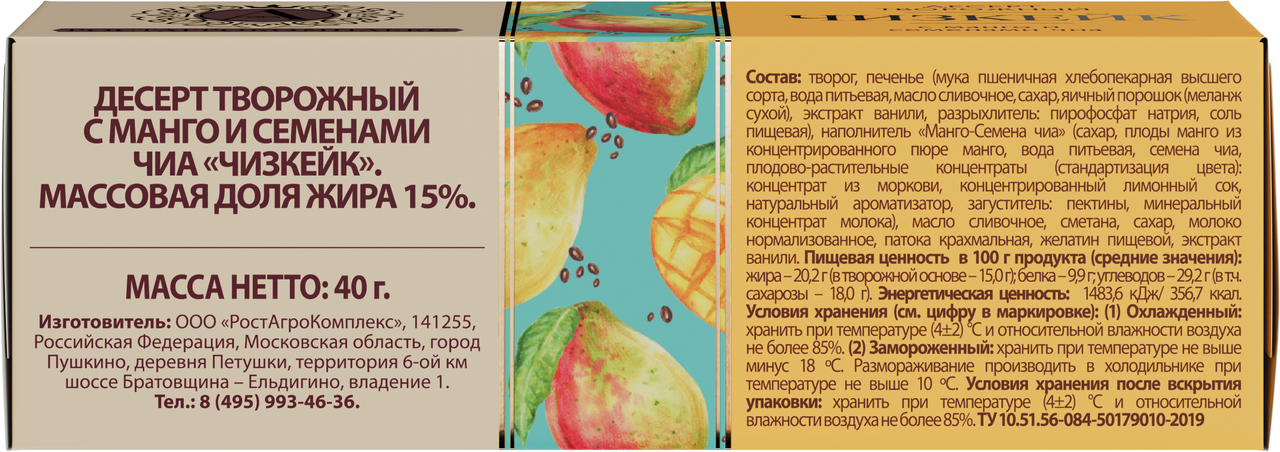Десерт творожный А.Ростагрокомплекс Чизкейк с манго и семенами чиа 15%, 40г