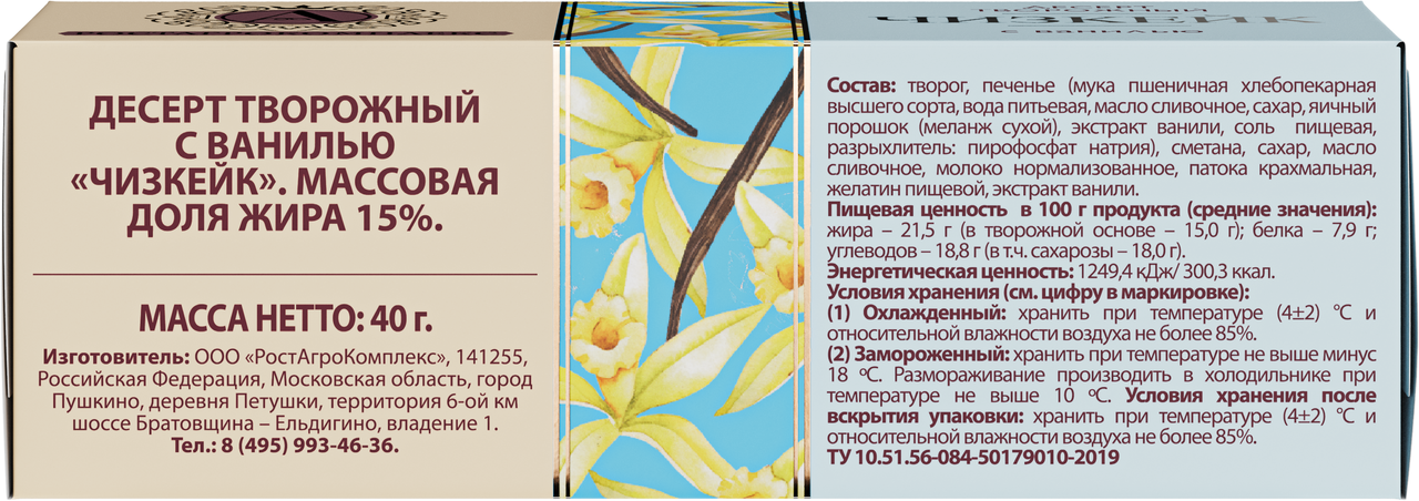 Десерт творожный А.Ростагрокомплекс Чизкейк с ванилью 15%, 40г