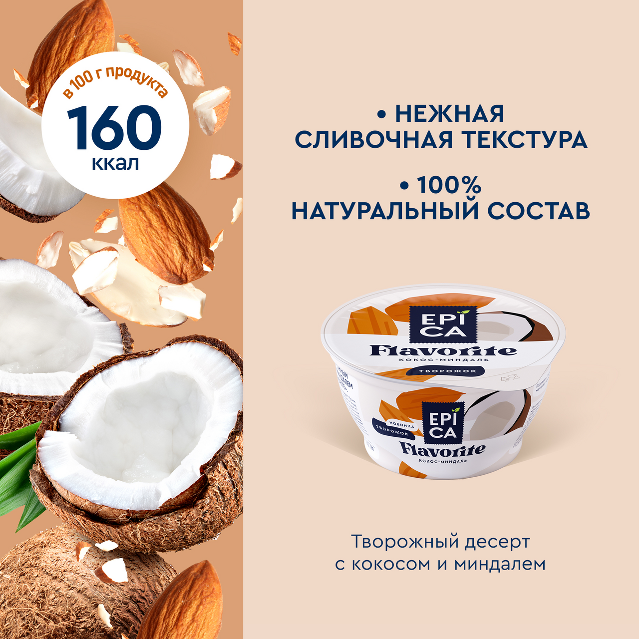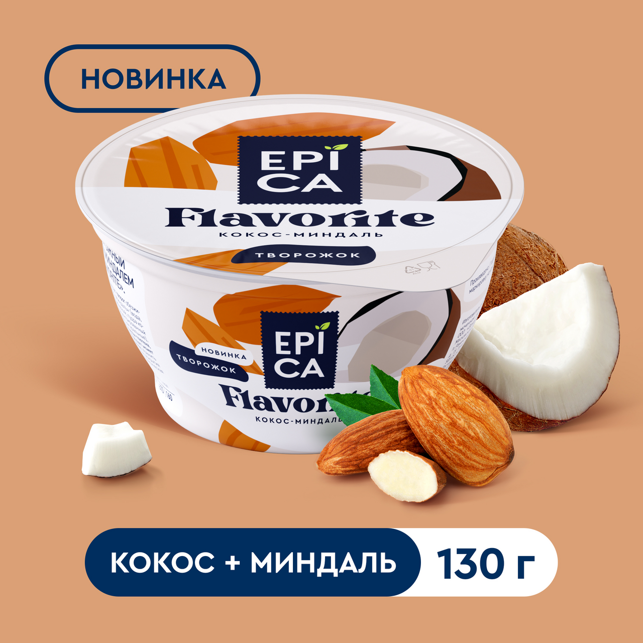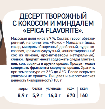 Десерт творожный Epica Favorite кокос и миндаль 8.9%, 130г