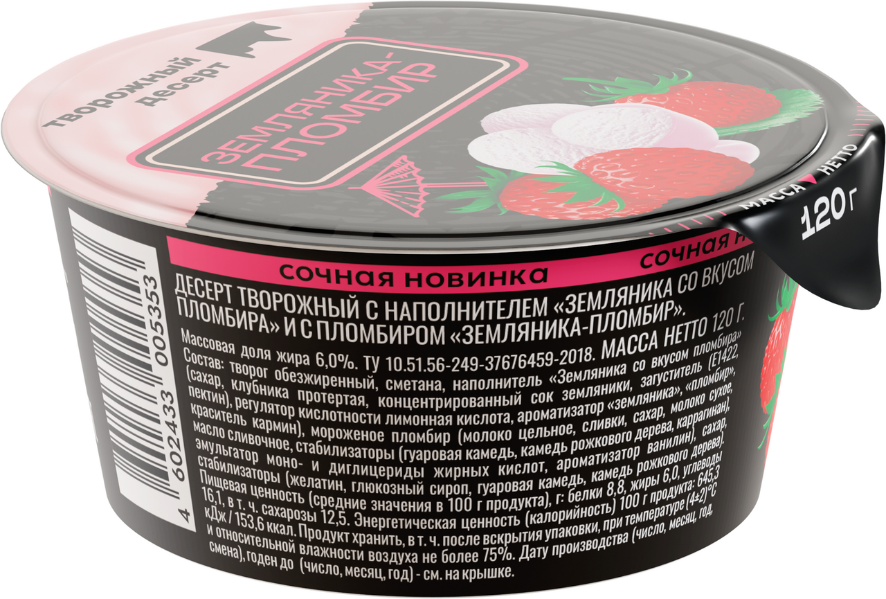 Десерт творожный Ирбитский молочный завод земляника и пломбир 6%, 120г