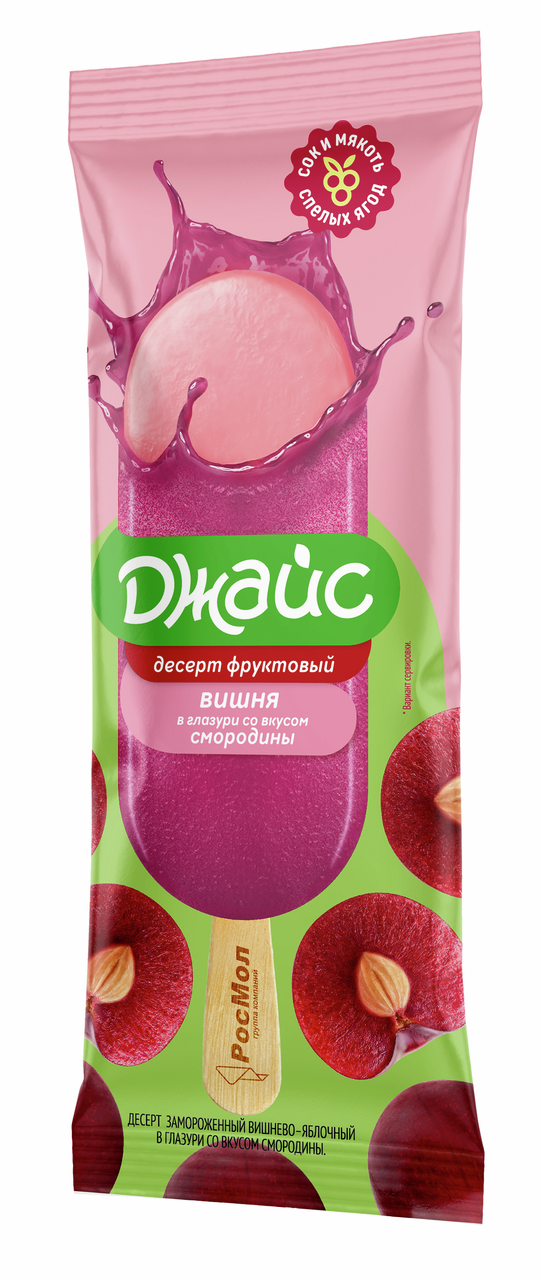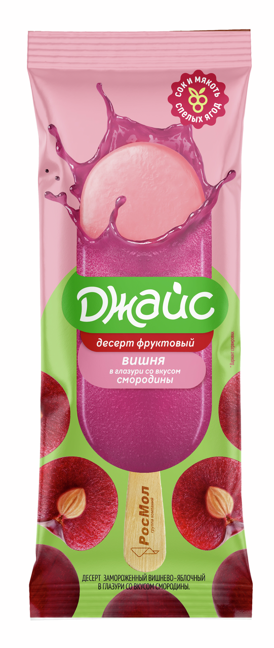 Десерт вишня в глазури со вкусом смородины Джайс Идеально для жаркого лета. В составе фруктово-ягодное пюре.