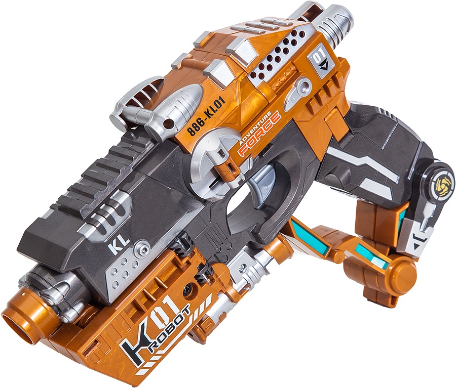 Пистолет-робот 2 в 1 Велоцираптор от Devik Toys имеет по-настоящему эффектный дизайн в стиле трансформеров. Оружие будущего стреляет на расстояние до 10 метров. Мягкие стрелы безопасны для здоровья, наконечники выполнены в виде силиконовых присосок.