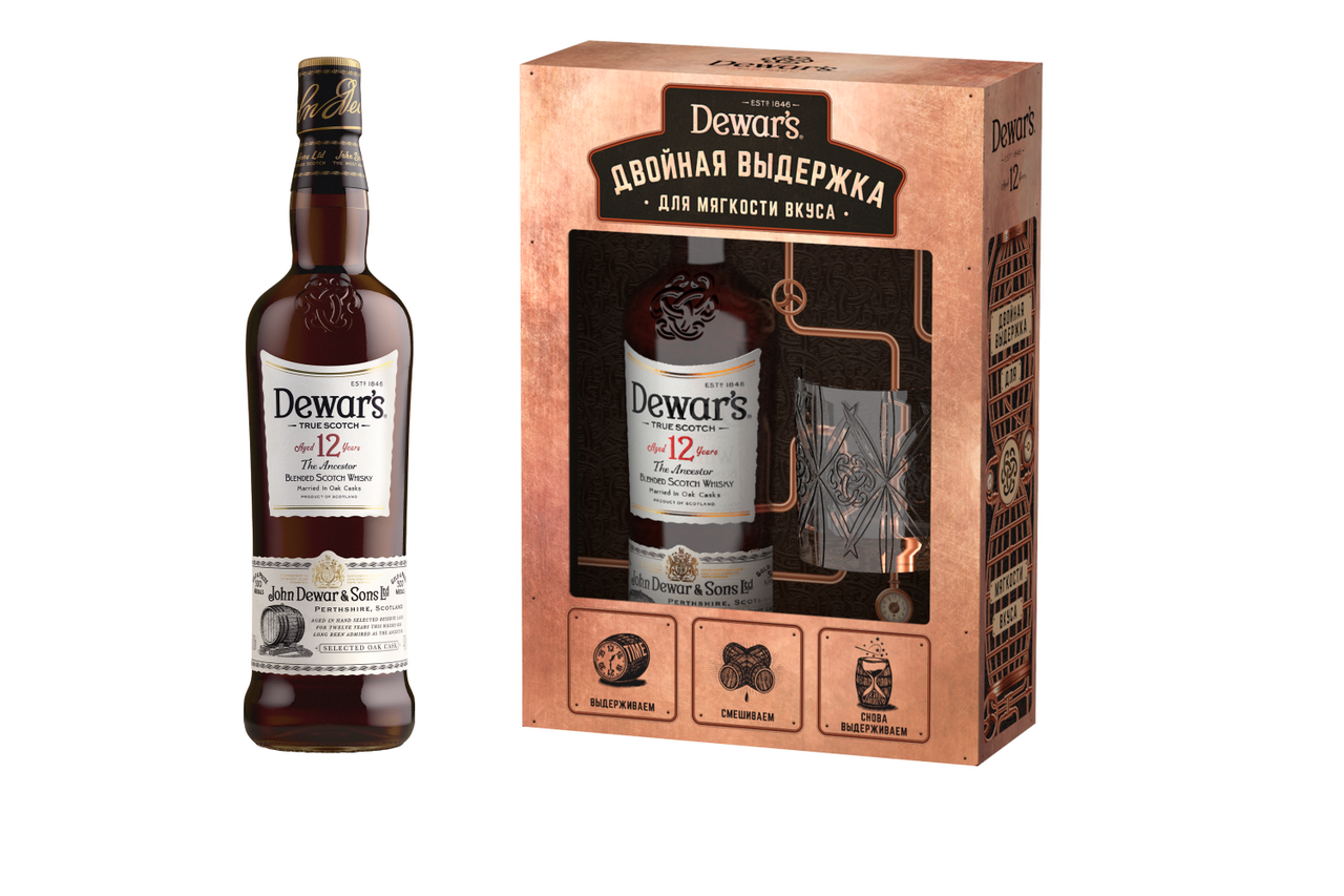 Виски Dewar's 12 лет + стакан в подарочной упаковке, 0.7л