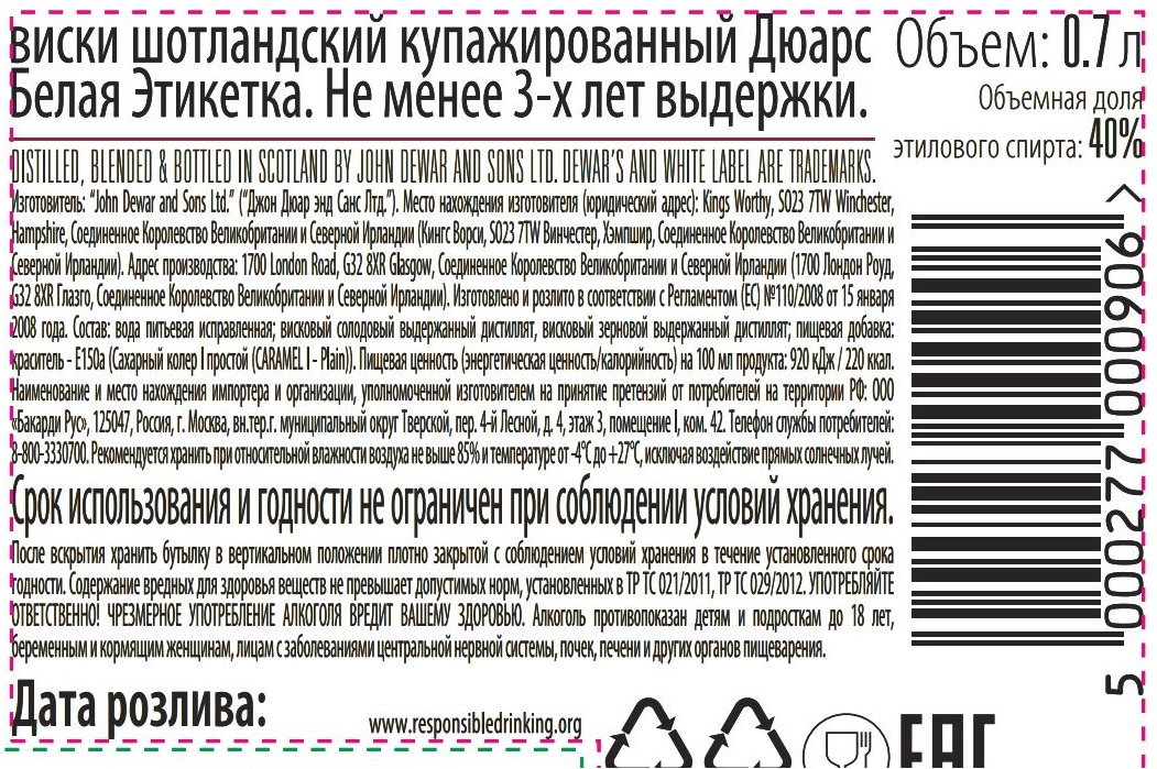 Виски шотландский Dewar's White Label в подарочной упаковке, 0.7л