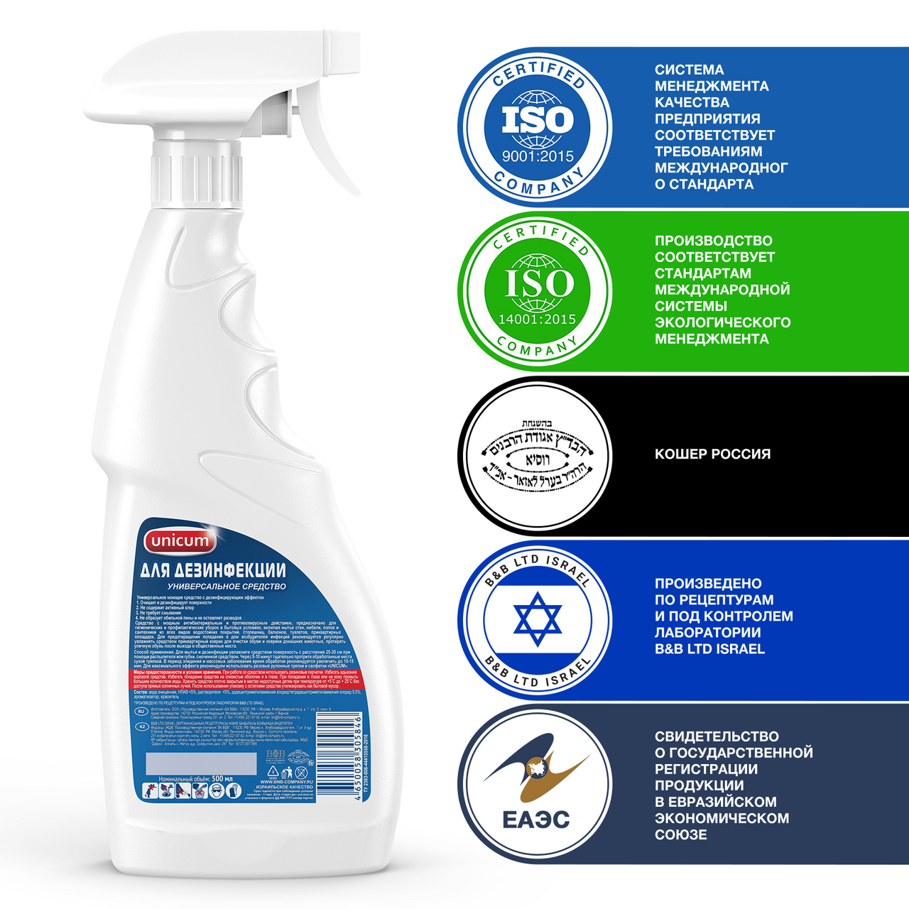 Дезинфицирующее чистящее средство UNICUM универсальное, спрей, 500мл