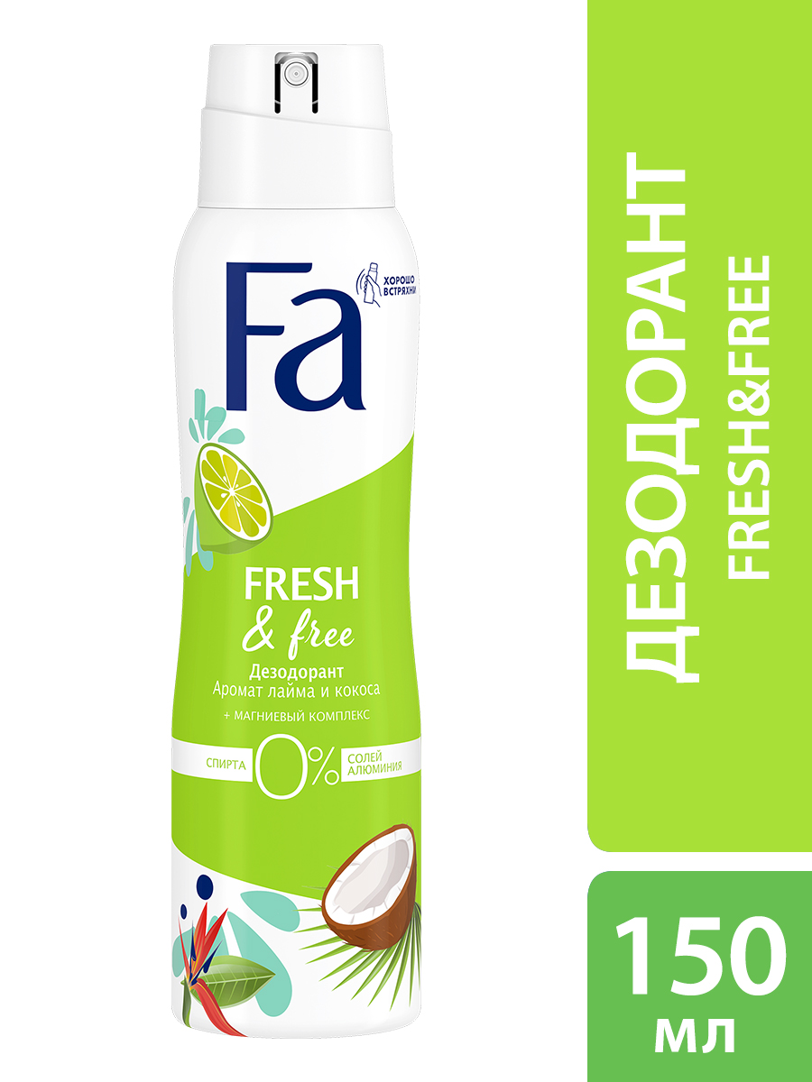 Дезодорант-спрей Фа Fresh & Free Аромат лайма и кокоса, 150мл