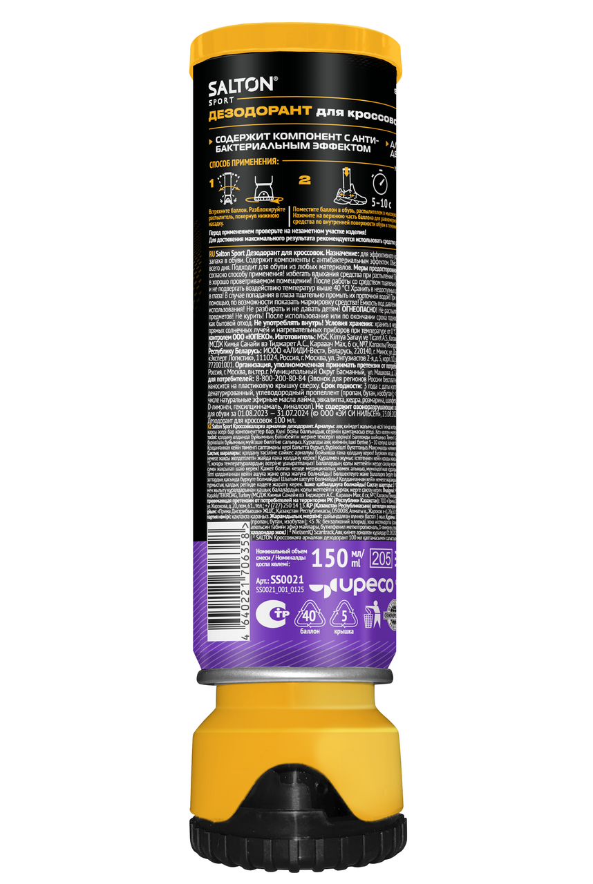 Дезодорант для кроссовок Salton Sport устранение запахов, 150мл