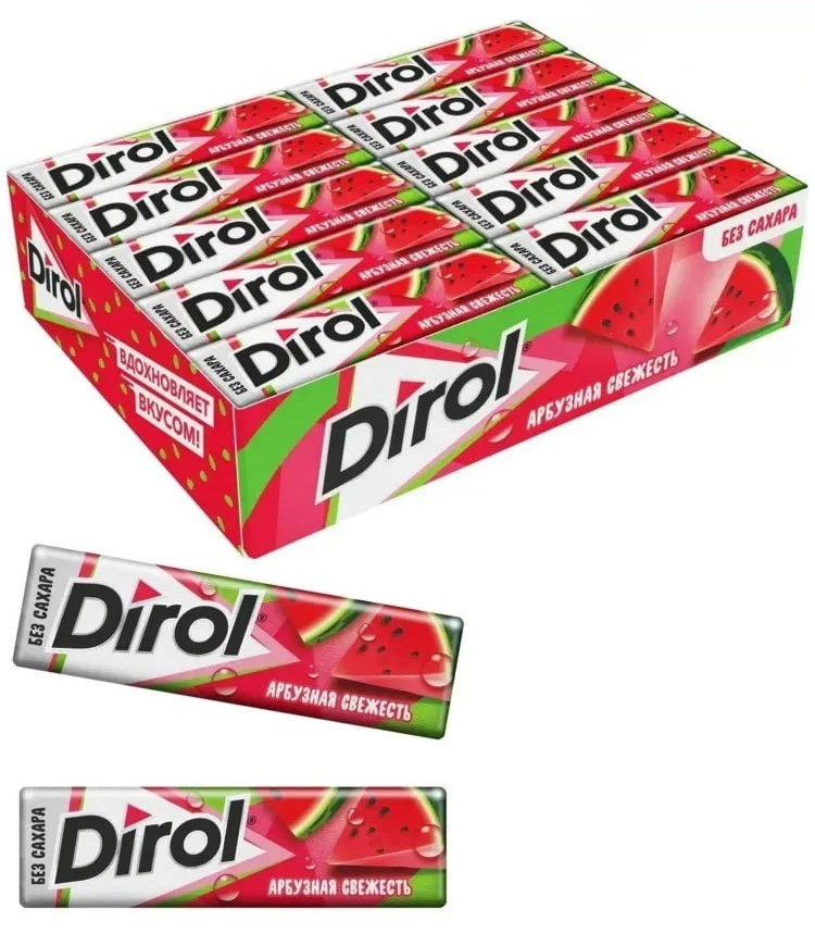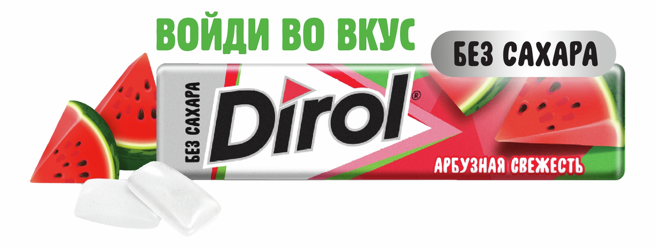 Участвует в конкурсе: Выиграйте кофемашину на сладкое! Совершите покупку товаров-участников на сумму от 1500₽ с 23 октября 2025г. по 14 января 2026г. и получите шанс выиграть кофемашину или другие сладкие призы! Чем больше покупок - тем больше шансов на победу! Подробнее об акции - https://cdn.metro-cc.ru/ru/mndlz_2025.pdf. Жевательная резинка Арбузная свежесть марки Dirol позаботится о гигиене полости рта. Она вновь сделает ваше дыхание приятным, а также подарит комфорт, удалив остатки пищи. Воспользуйтесь ей, когда необходимо быстро и незаметно привести себя в порядок, ведь такую альтернативу зубной щетке можно всегда иметь под рукой. Кроме того, жевательная резинка обладает приятным фруктовым вкусом.