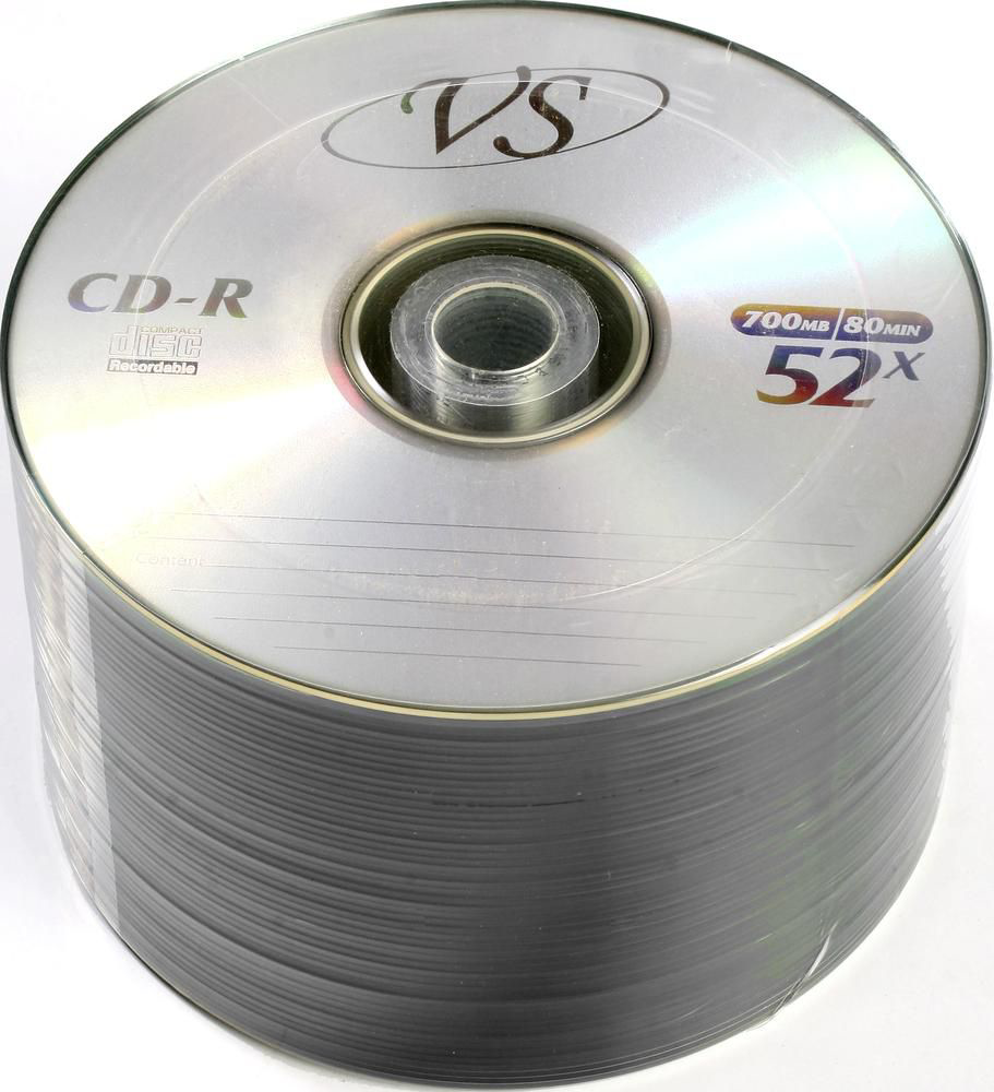 Диск CD-R, 50 штук в упаковке. Современные технологии производства обеспечивают стабильную устойчивость записи и сохранность информации при самых высоких скоростях. Реализованые в CD-R VS идеи и технологии позволили нам предложить наилучшее соотношение цена/качество. Cоответствует мировым стандартам качества записываемых CD-R. Объем записываемой информации 700 Mb/80 мин. Высокая скорость записи 1-52х. Предназначен для однократной записи данных. Совместим со всеми приводами и записывающими устройствами, имеющимися на рынке. Идеально подходит для архивации данных (музыка, видео, графика, фото и т.д.). Гарантия надежной сохранности информации.
