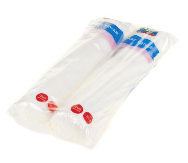Ватные диски 2 х 120 шт. Состав: 100% хлопок. Не предназначено для употребления в пищу. Хранить в сухих помещениях. Срок годности не ограничен.