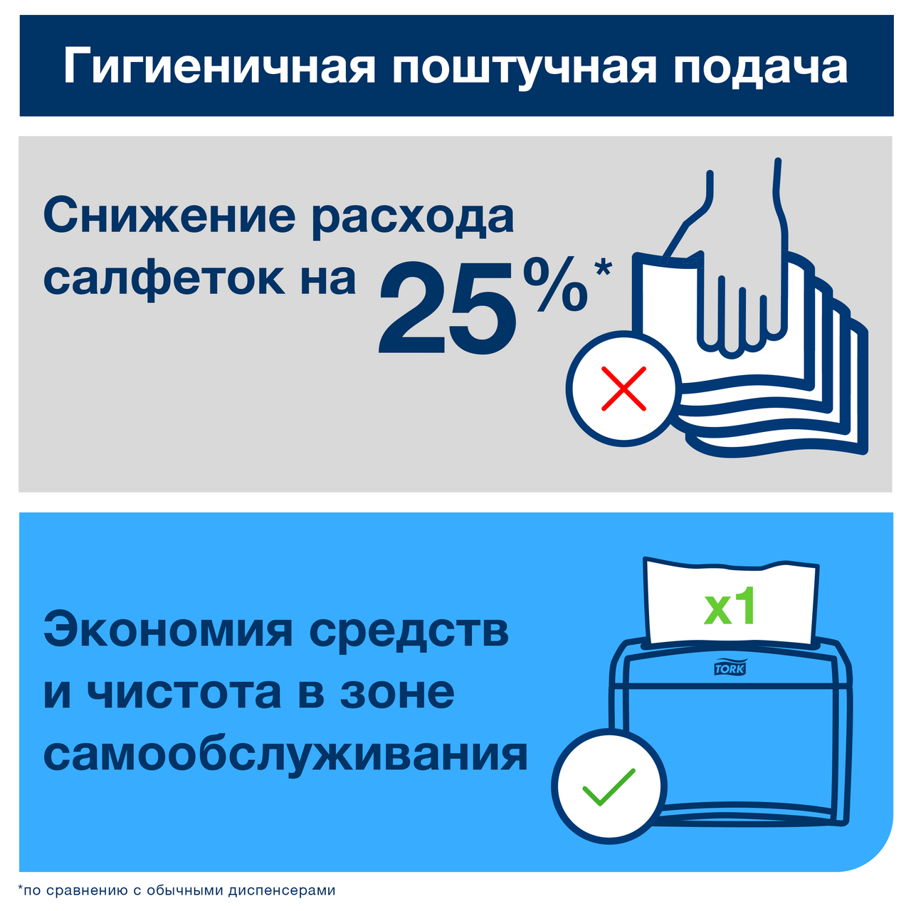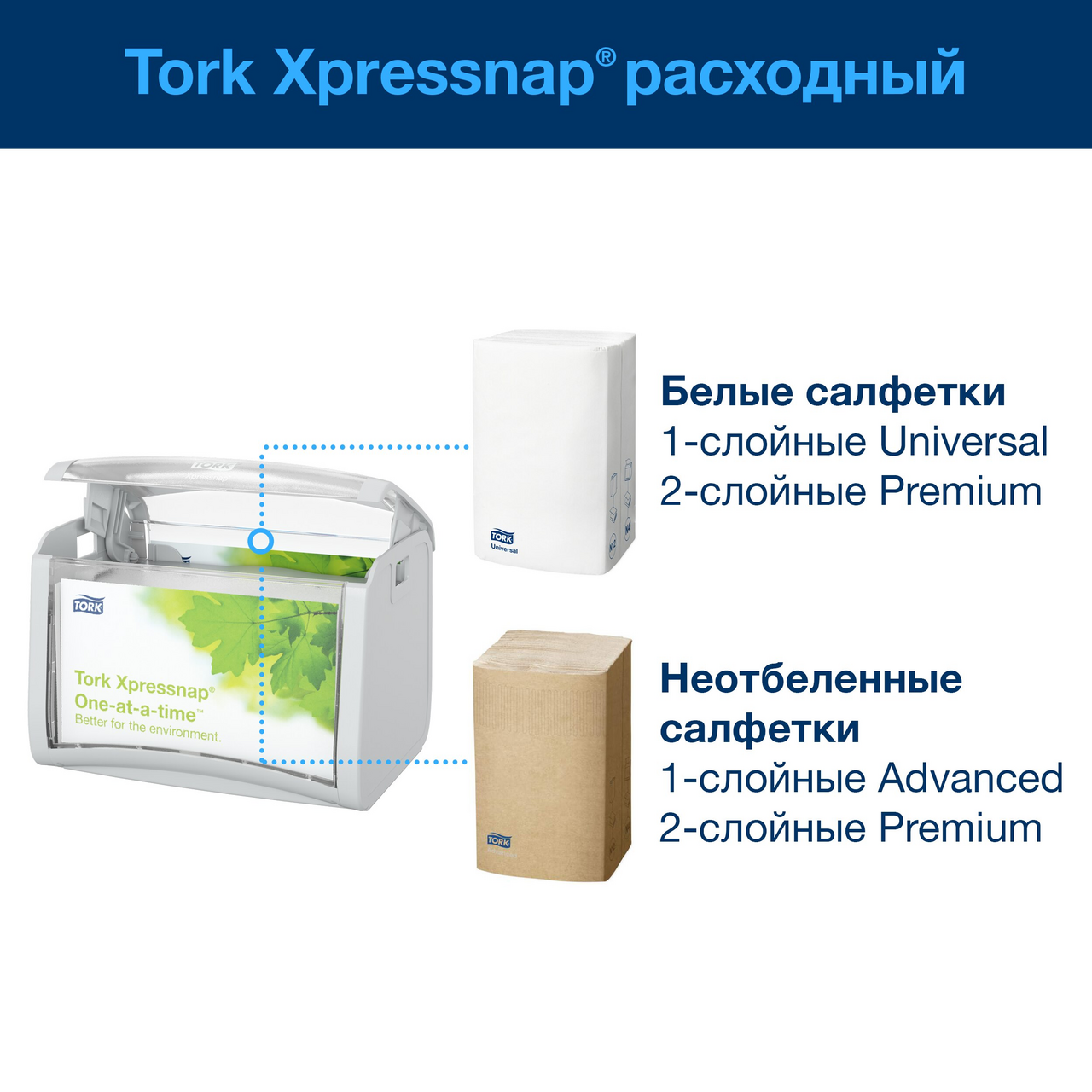 Tork Xpressnap настольный диспенсер для салфеток подходит для ресторанов любого типа. При небольшом количестве посетителей может использоваться также на линии раздачи. Этот компактный и современный диспенсер обеспечивает полистовой отбор салфеток, повышая уровень гигиены и значительно снижая расход салфеток не менее чем на 25% по сравнению с обычными диспенсерами для салфеток.