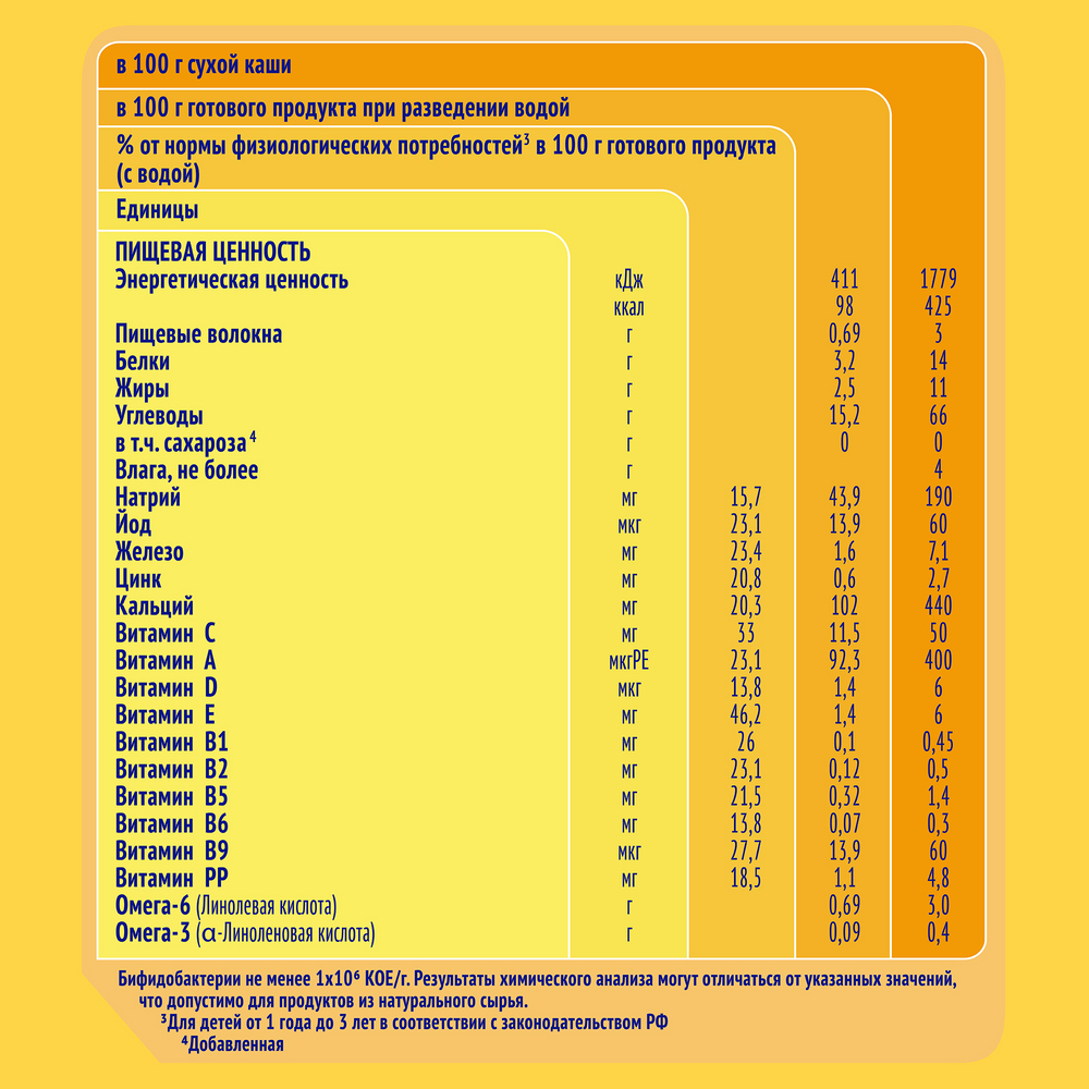 Молочная мультизлаковая каша с яблоком и бананом приготовлена с использованием особой технологии бережного расщепления злаков СНЕ. Благодаря этому в продукте появляется естественный сладкий вкус, каша лучше усваивается и имеет повышенную пищевую ценность. Каша является полезным сбалансированным прикормом для здоровых детей. 5 злаков (пшеница, греча, рис, овес и кукуруза) дополняют друг друга, обеспечивая ребенка питательными веществами. Яблоко и банан способствуют развитию вкусовых восприятий малыша. Каша обогащена витаминами и микроэлементами, содержит пробиотики — живые бифидобактерии комплекса BL. Они способствуют нормализации пищеварения, росту здоровой микрофлоры и укреплению иммунитета, что очень важ��о в период введения прикорма. Порционная упаковка (саше, 35г) удобна при использовании вне дома, при первой покупке на пробу, а также для того чтобы разнообразить недельное меню ребенка.