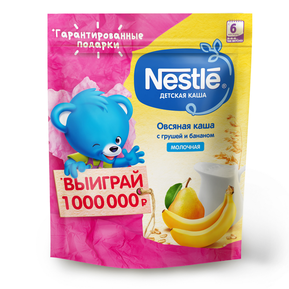 Каша Nestle овсяная с грушей и бананом молочная с 6 месяцев, 220г
