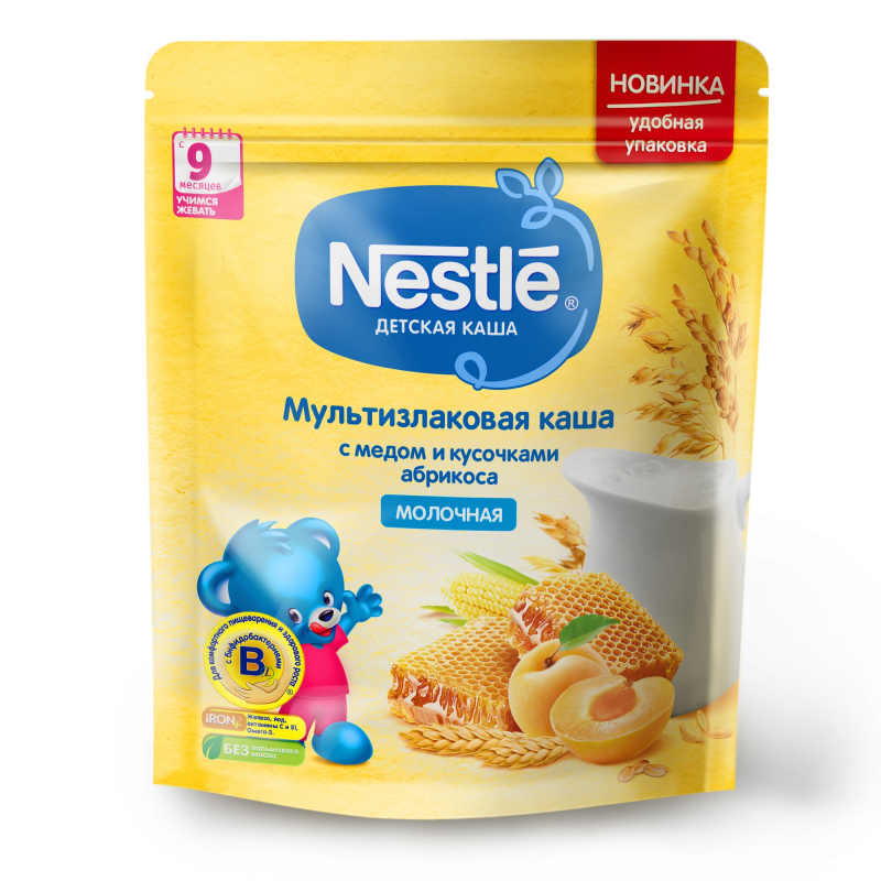 Каша для детей Nestle мультизлаковая мед абрикос молочная, 220г
