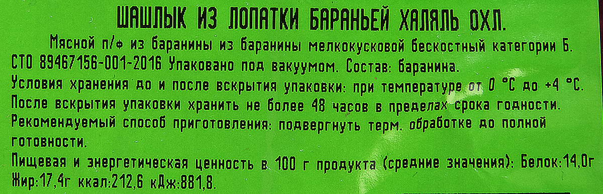 Лопатка баранья Мясо есть! Для шашлыка Халяль охлажденная, ~1кг