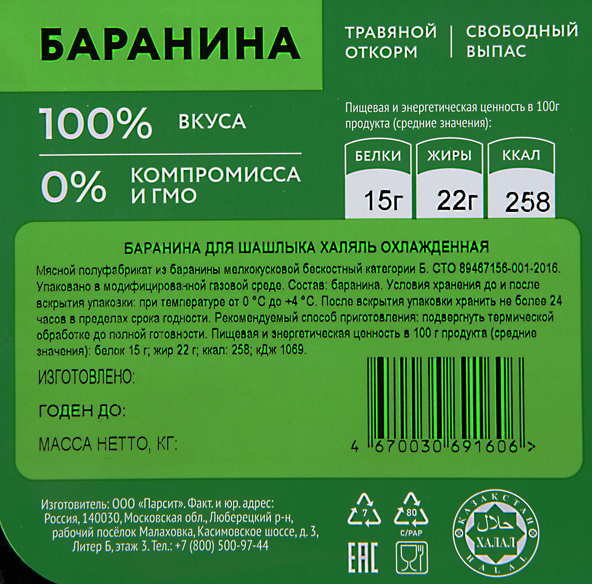 Баранина Мясо есть! для шашлыка халяль охлажденная, 400г