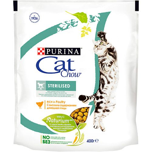 Корм сухой Cat Chow Sterilized для кошек с домашней птицей, 400г