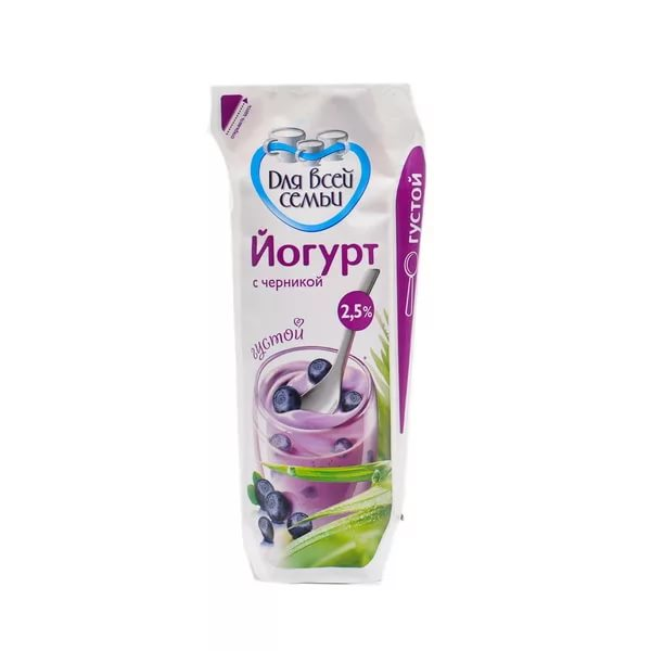 Йогурт питьевой Для всей семьи густой черника 2.5%, 450г