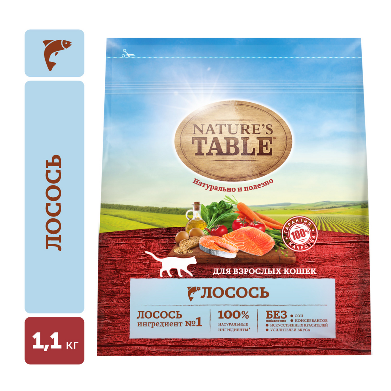Корм сухой Nature's Table для взрослых кошек лосось, 1.1кг