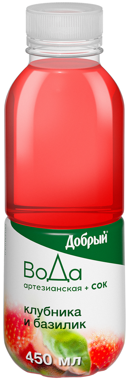 Добрый Вода + Сок с клубникой и базиликом, 450мл