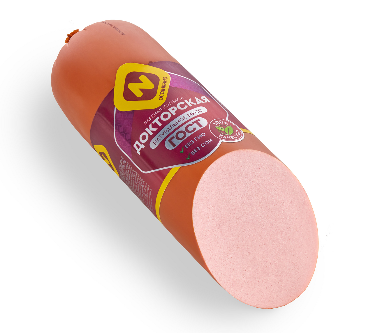 Колбаса Докторская Останкино, ~ 1367 г - нежный вкус знакомый с детства. Благодаря добавлению молока и яиц, колбаса имеет нежный сливочный вкус, а отсутствие в рецептуре шпика снижает содержание жиров.