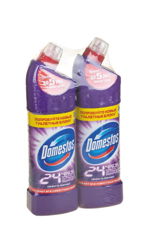 Хотите обеспечить блестящую чистоту и защиту от микробов в вашем доме быстро и надолго? Универсальное средство Domestos Свежесть Лаванды - это эффективный чистящий гель, который уничтожает 100% известных микробов во всем доме для защиты вашей семьи.Средство Domestos универсально и подойдет для уборки всего дома. В неразбавленном виде средство можно использовать для очищения и дезинфекции унитаза, ванны, раковины, стоков и сливов, а в разбавленном - для мытья множества поверхностей (пол, кафельные поверхности, плитка, рабочие поверхности на кухне, мусорные ведра) и даже для отб��ливания белья и тканей. А универсальное средство Domestos подходит для септиков. Ознакомьтесь с инструкцией по применению для каждого вида поверхностей.Благодаря особой формуле с дезинфицирующим эффектом и чистящими компонентами, Domestos убивает все известные микробы, максимально отчищает грязь и устраняет неприятные запахи. Уникальная формула геля Domestos предотвращает появление известкового налета. Густая текстура геля Domestos обеспечивает гарантированное очищение и убивает бактерии, грибки, вирусы и споры. Изогнутый дозатор обеспечит удобство использования. Регулярно используйте Domestos для постоянной чистоты и белизны вашего туалета и других поверхностей.Универсальное средство Domestos экономично и быстро обеспечивает длительное действие и защиту. Тысячи лабораторных тестов каждую неделю подтверждают, Domestos Непобедимый’. Безжалостное уничтожение микробов обеспечит дезинфекцию и чистоту в вашем доме.‘в борьбе с микробами, в линейке продукции Unilever.