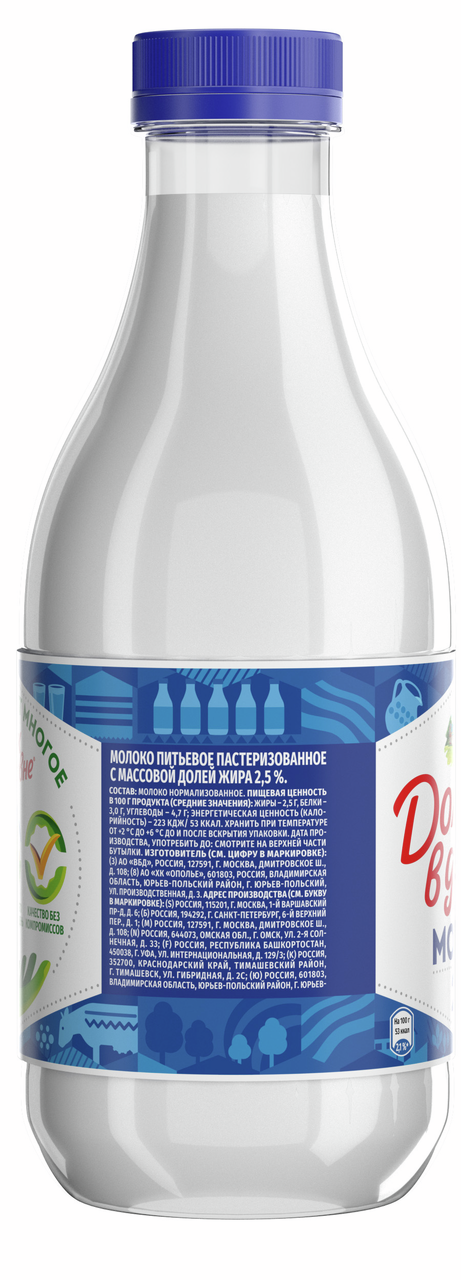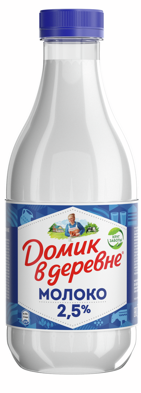 "Молоко Домик в деревне – 100% натуральный продукт, приготовленный по традиционным рецептам.●100% натуральное молоко. Без добавления консервантов и красителей.●Молоко 2,5% подходит для тех, кто любит традиционный вкус молока●Пить молоко Домик в деревне можно холодным и тёплым.●Идеально для кофе, чая и приготовления ваших любимых блюдПастеризованное молоко сохраняет максимум полезных свойств. При пастеризации молоко нагревают до 72 С – 95 С от 15 секунд до нескольких минут. Этот процесс сохраняет необходимые организму полезные вещества. Пастеризованное молоко может храниться относительно недолго (21 день) и только в холодильнике.Домик в Деревне – это 100% натуральные молочные продукты, приготовленные по традиционным рецептам. Как и бабушки, мы берем молоко от коров, которых кормили сочной травой, фильтруем его сразу после дойки и охлаждаем до 4-х градусов. В наших продуктах нет добавленных консервантов и красителей. Домик в деревне - все, что мы узнали о натуральности, мы узнали от бабушек."