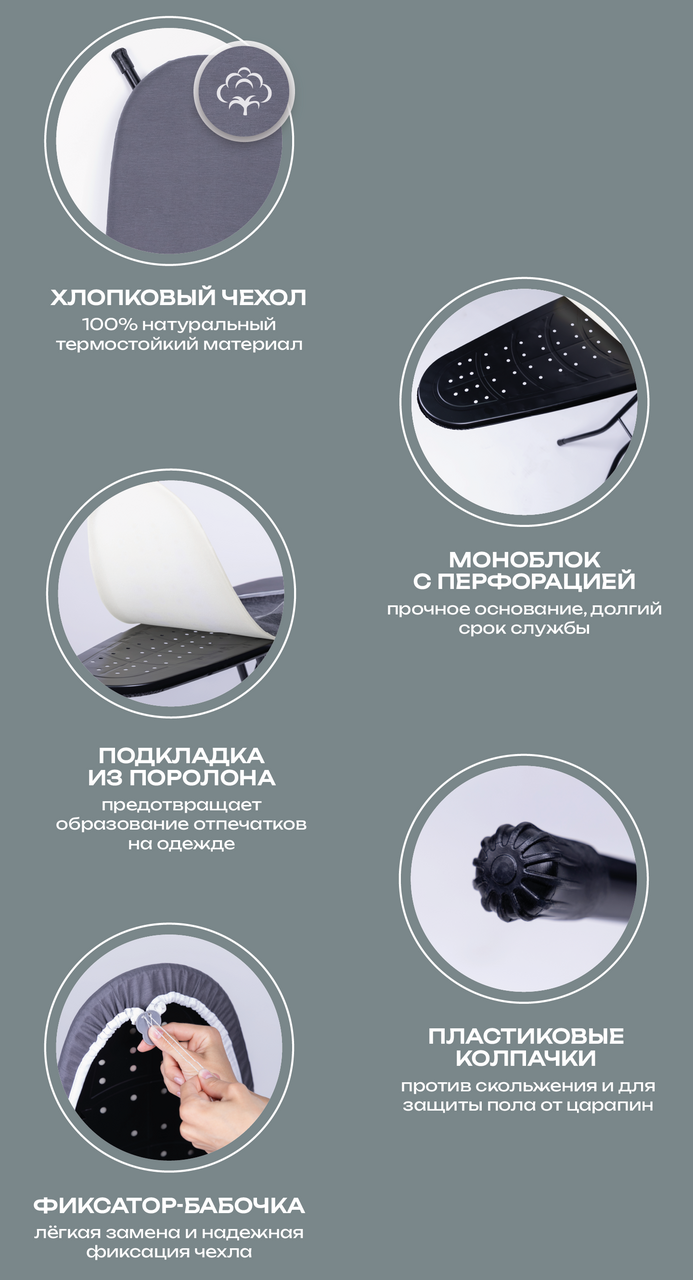 Доска гладильная 140*38см, основа стола - моноблок, электростатическая порошковая покраска, увеличенная поверхность для глажения за счет отсутствия подставки под утюг, устойчивые ножки (диаметр трубы 25), регулировка высоты 70-90см.