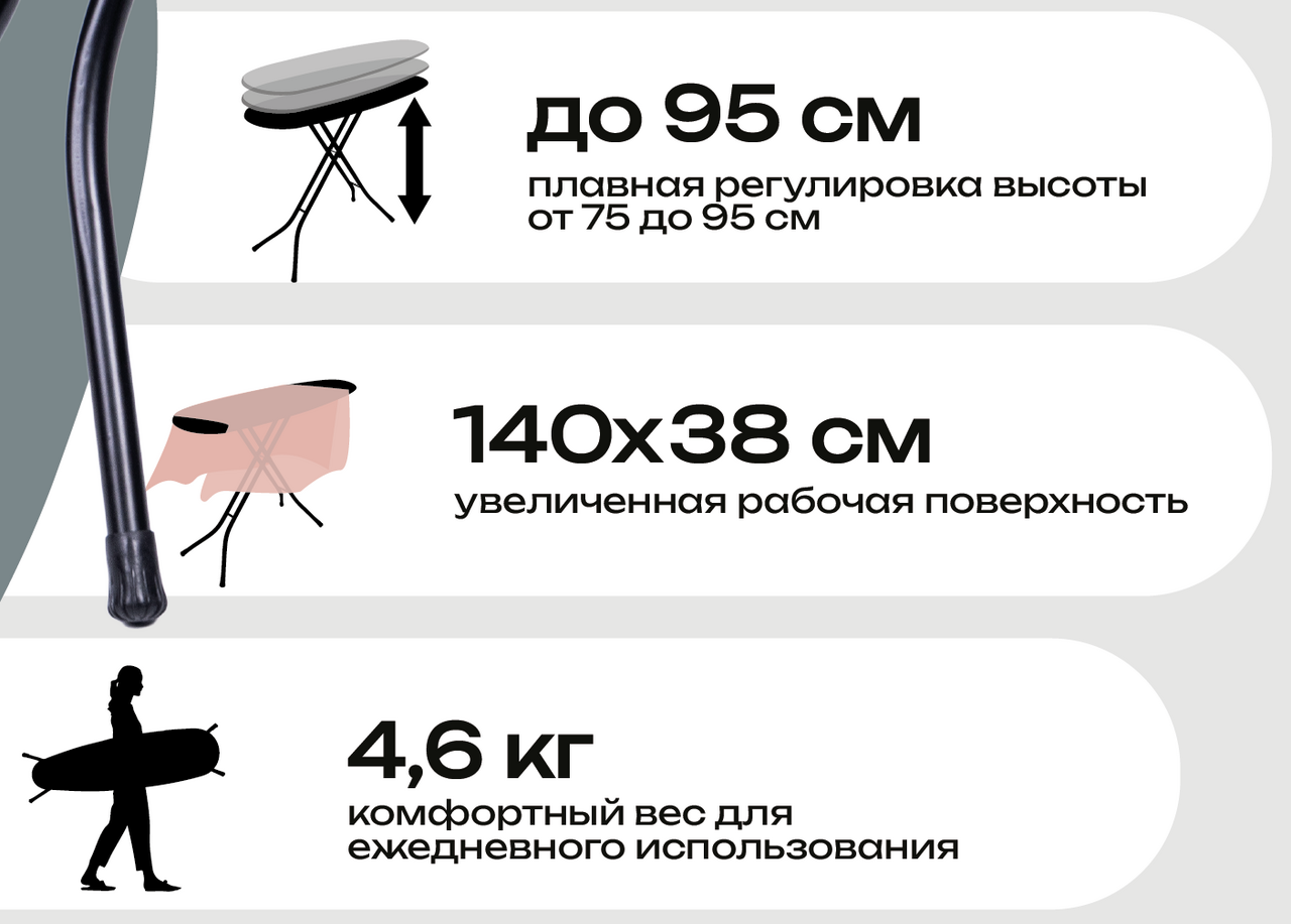 - Размер гладильной поверхности, см 38 х 140