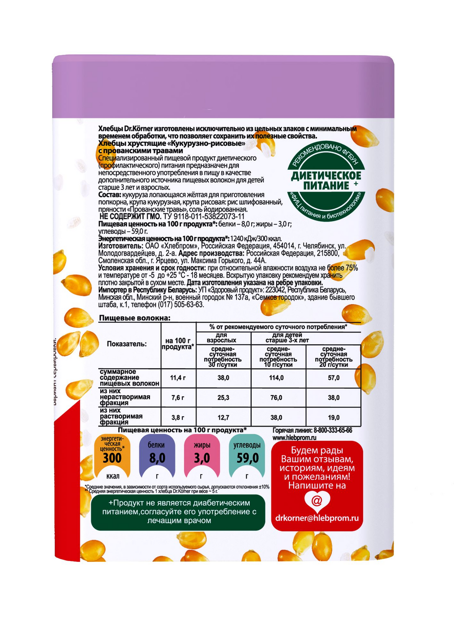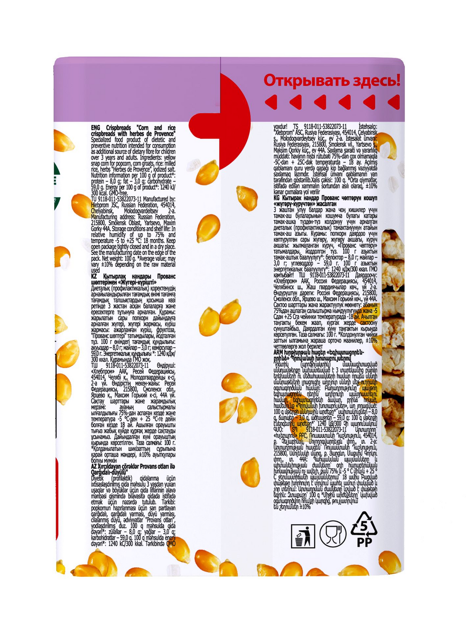 Кукурузно-Рисовые хлебцы с прованскими травами доставят истинное наслаждение приверженцам здорового питания и гурманам. Цельные злаки и натуральные ингредиенты помогают улучшить пищеварение и очистить организм.