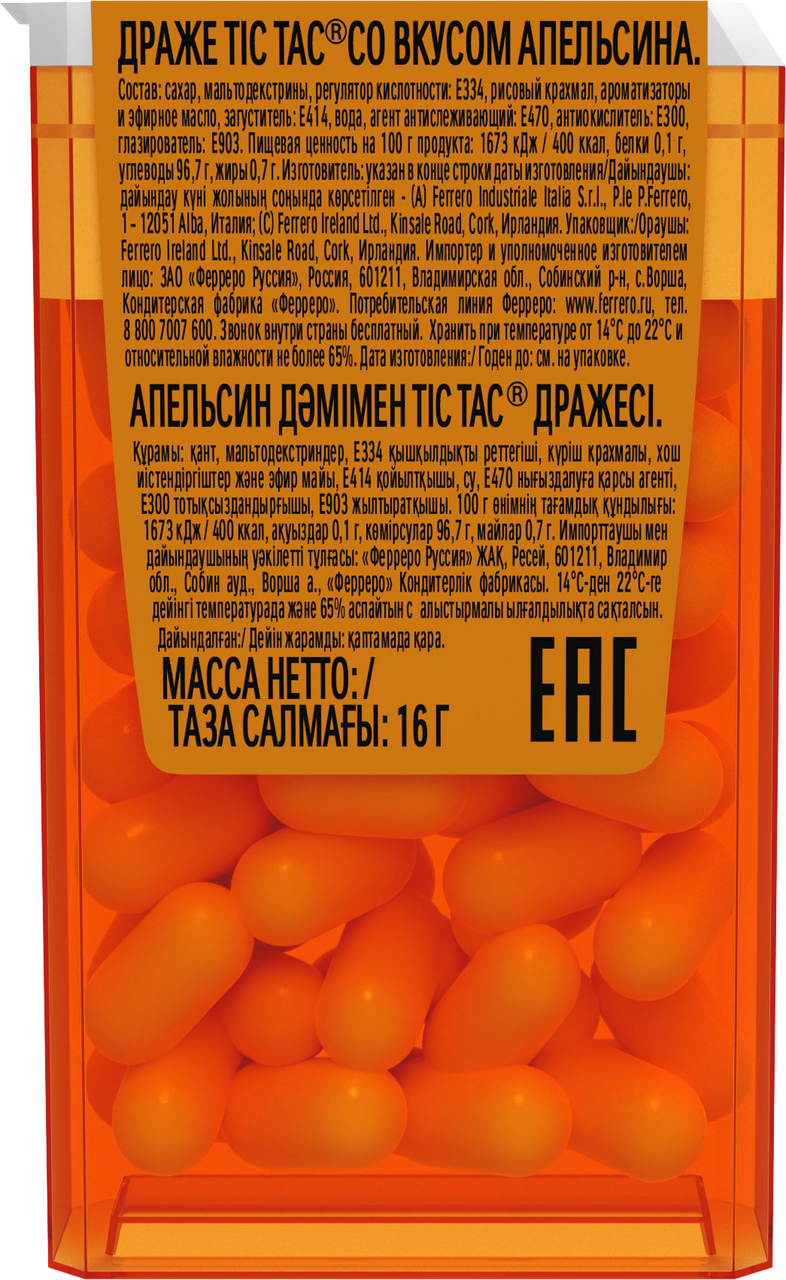 Драже Tic Tac со вкусом апельсина, 16г