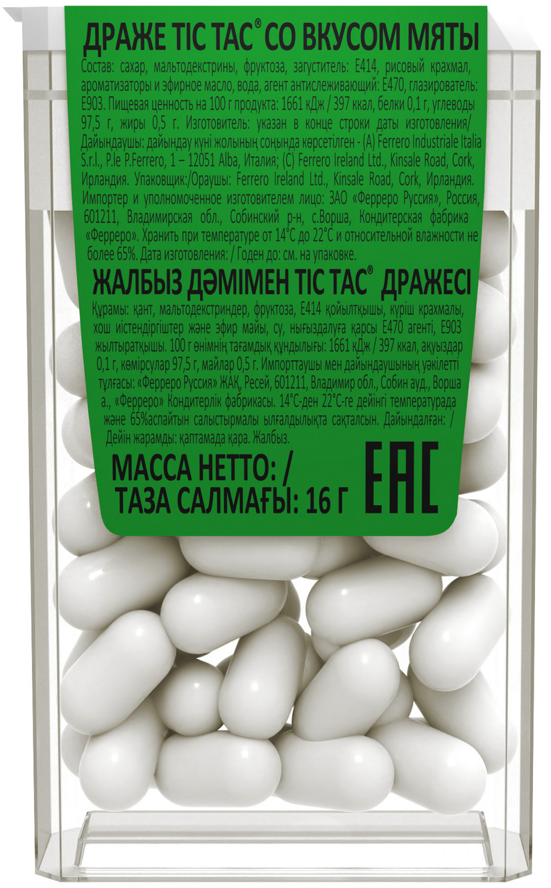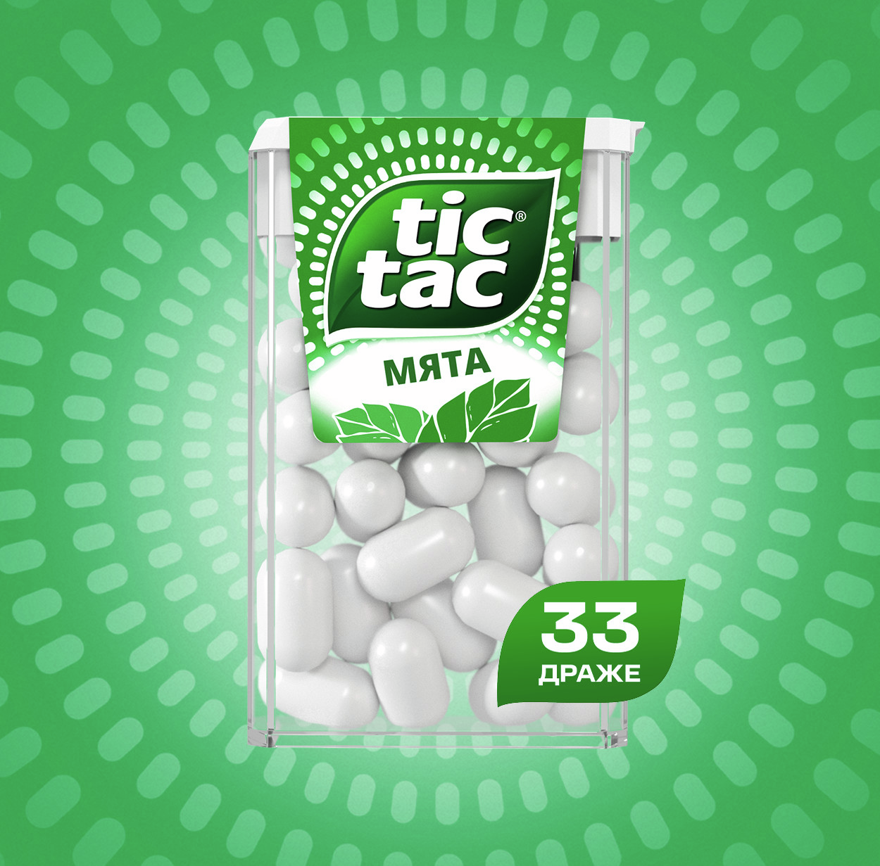 Tic Tac – это освежающее драже c ярким и бодрящим вкусом в удобной упаковке. Tic Tac пришел на российский рынок в 90-ые годы 20 века и по сей день является продуктом, который хорошо знают и любят как взрослые, так и дети. Мята, Апельсин, Клубничный, Фруктовый и Ягодный Микс – калейдоскоп вкусов Tic Tac дарит заряд свежести и позитивной энергии. Под тонкой оболочкой скрывается уникальный вкус и источник свежести. Это больше, чем двойной эффект и второе дыхание! Яркое драже Tic Tac с незабываемыми свежими вкусами поможет наполнить твой день яркими моментами!