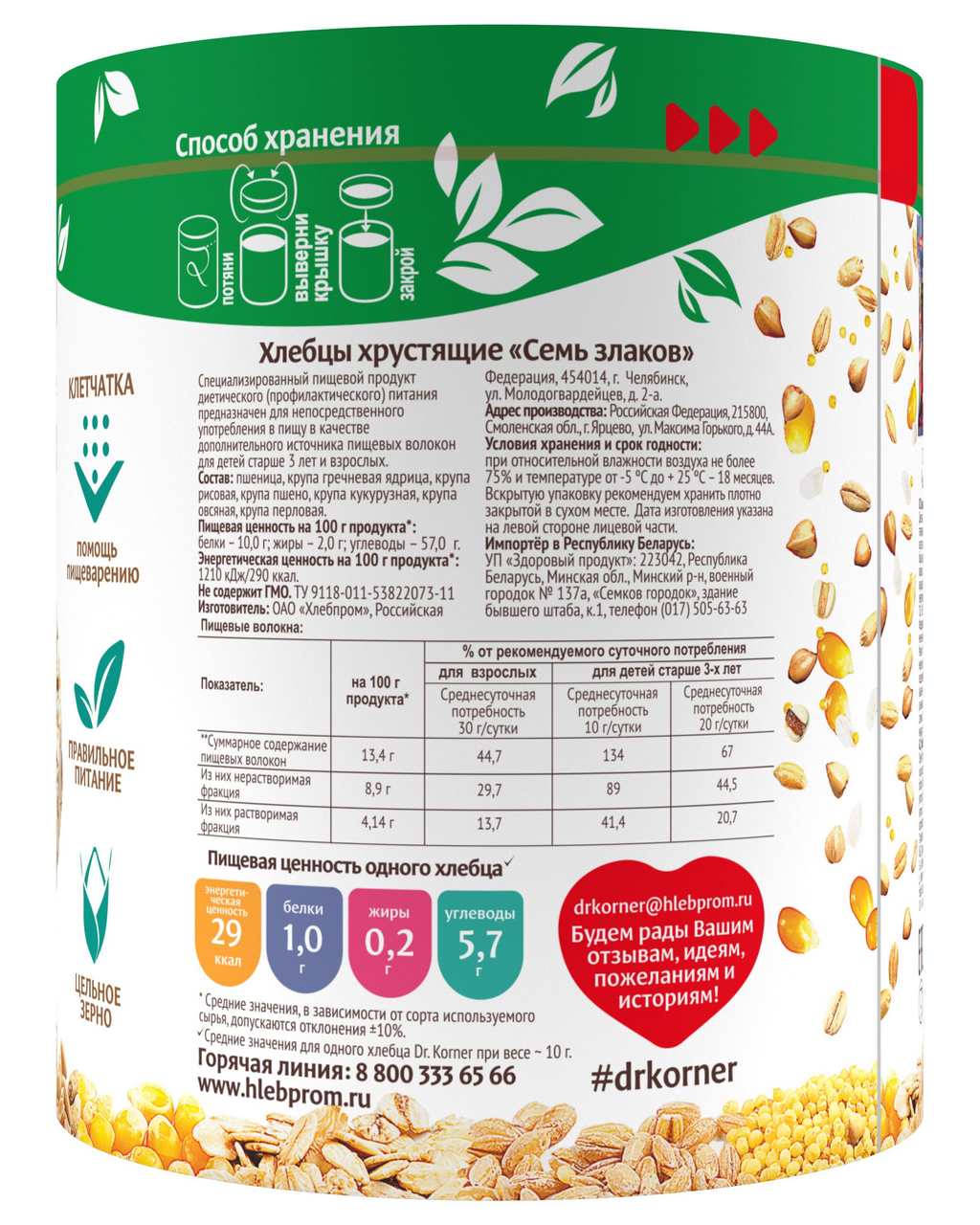 Хлебцы Dr. Korner хрустящие 7 злаков, 100г