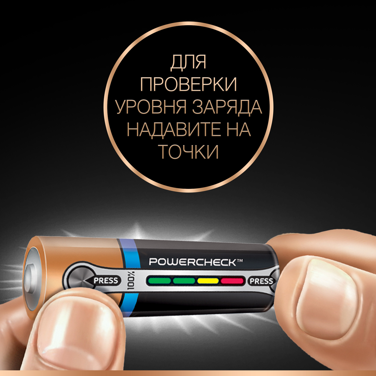 Батарейка щелочная (алкалиновая) пальчиковая с индикатором заряда. Нажмите на две белые точки, чтобы увидеть сколько заряда осталось в батарейке. Работает до 70% дольше обычных солевых батареек. Типоразмер: АА. Напряжение питания: 1,5 В. При установке соблюдать полярность (+/-). Не разбирать, не перезаряжать, не подносить к открытому огню. Не устанавливать одновременно новые и использованные батарейки, а также батарейки различных марок, систем, типов. В упаковке 12 штук. Срок годности: 7 лет. Состав короба: 12шт.