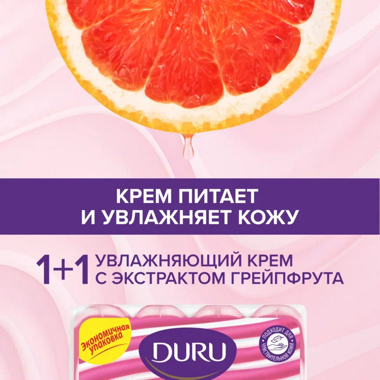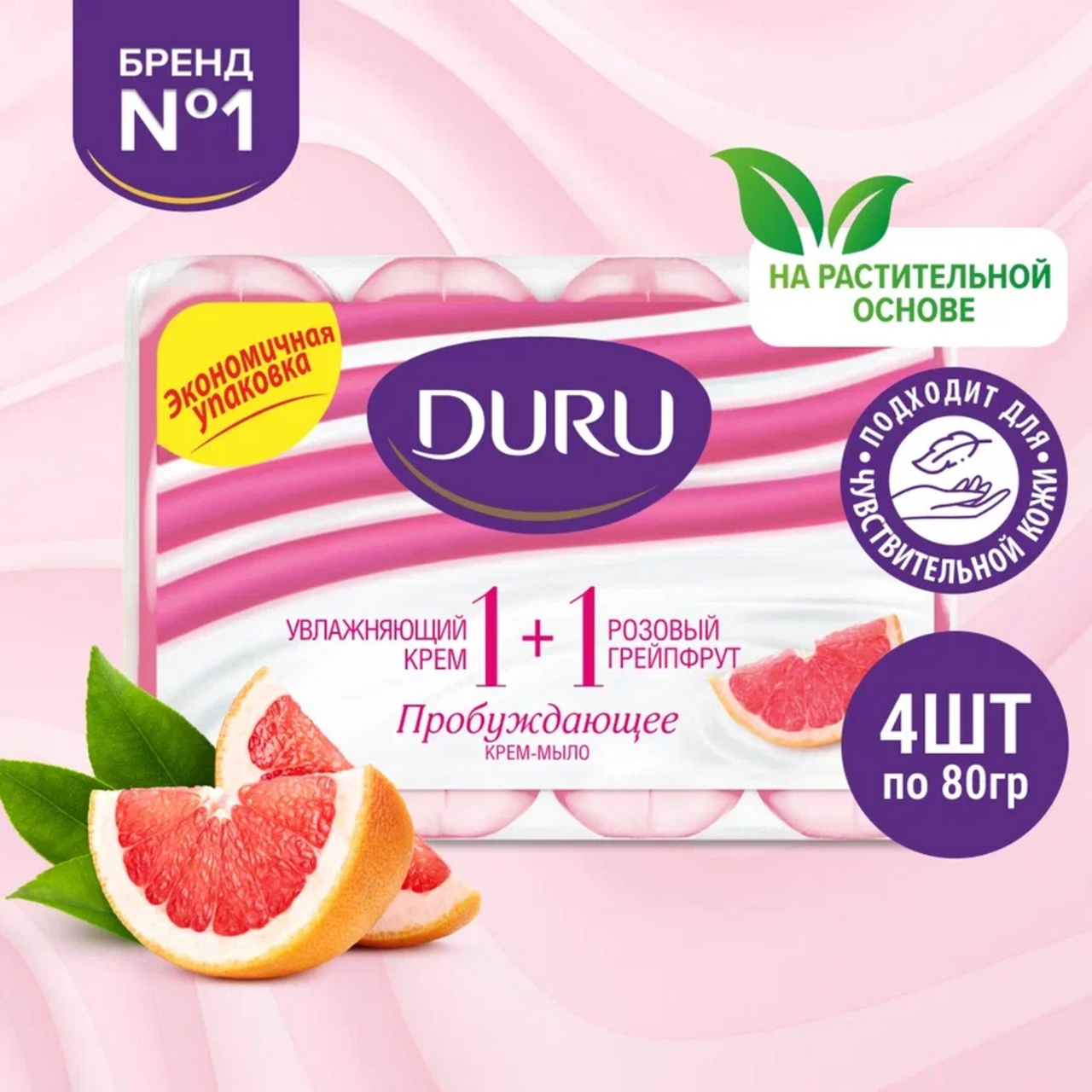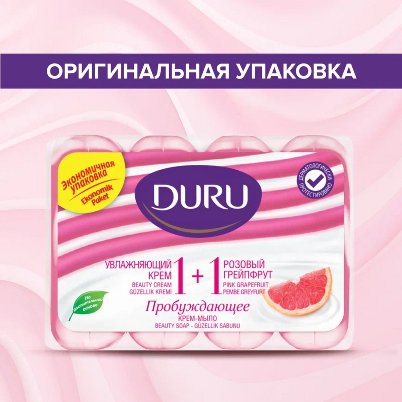Мыло туалетное Duru Розовый грейпфрут 1+1 (80г x 4шт), 320г