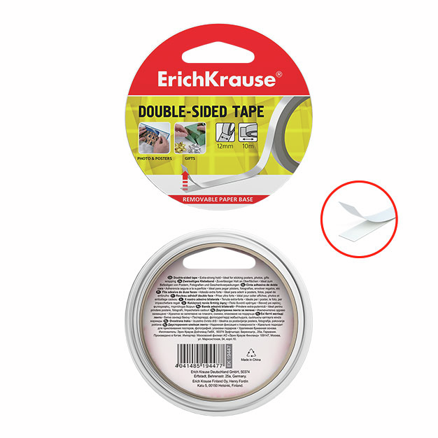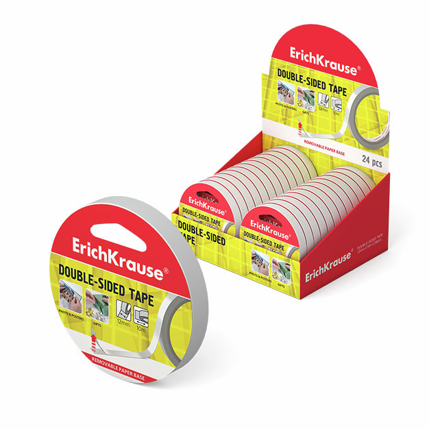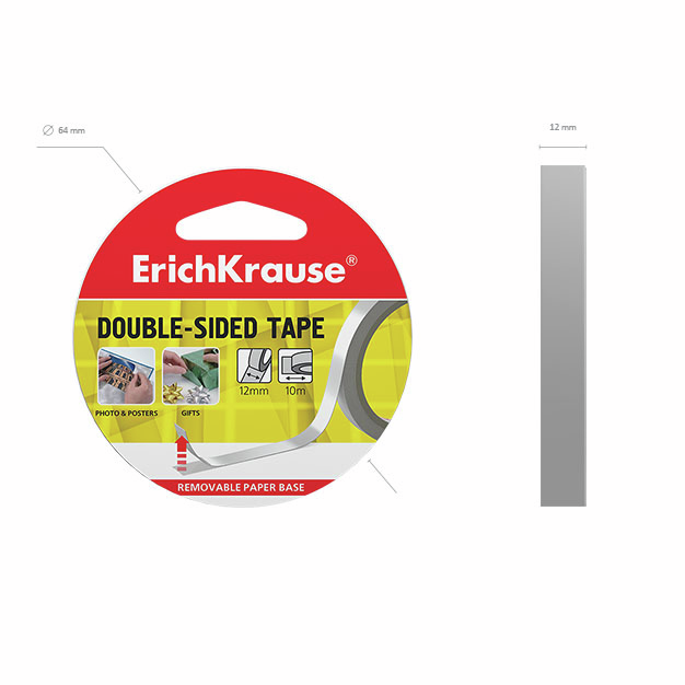 Лента Erich Krause клейкая двусторонняя, 12мм x 10м